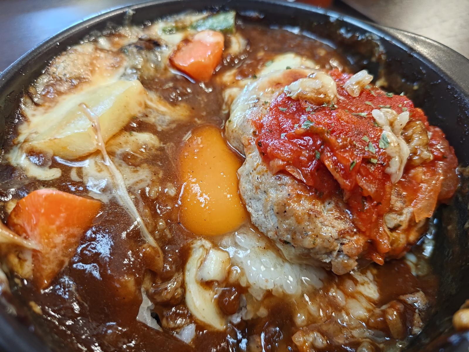 焼きカレーハンバーグ乗せ@花栞 2025/1/26(1年前) 旅, 群馬, 関東, 食べ物 友人の帰りのバスが出る草津に来ました. 嬬恋をまわって時間がなくなってきたので昼食だけ食べることにしました. 来たのは草津温泉門の近くにある花栞. 注文したのは焼きカレーハンバーグ乗せ. 店内. サラダとサービスのきんぴら. そして焼きカレーハンバーグ乗せ. アツアツだしハンバーグがボリューミーで満足です. 中に卵が入っていました.