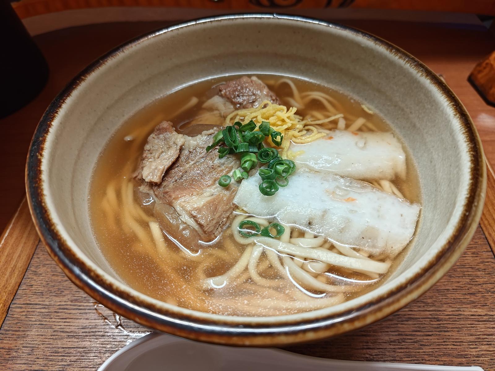ソーキそば@ススリバ 2025/1/30(1年前) 旅, 沖縄, 食べ物 そば処わかまつの向かいにある沖縄そばススリバに入りました. 店の中にも琉球赤瓦の屋根とシーサー. 次郎系もあり惹かれましたが軟骨ソーキそばにしました. それぞれの席が仕切られていました. 軟骨ソーキそばでてきました. 今回最初の沖縄料理を堪能しました.