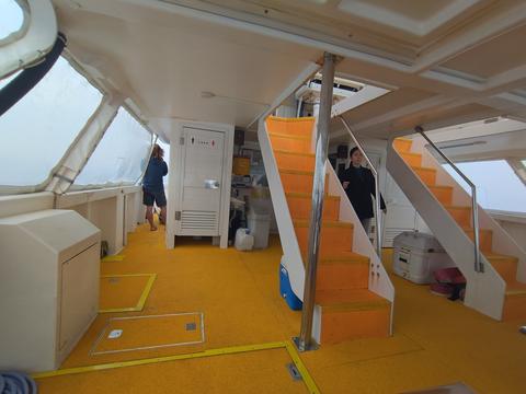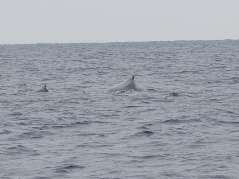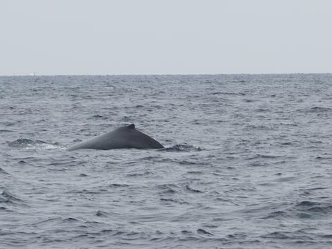 クジラが見えたとアナウンスがあり,船首へ行きました.
