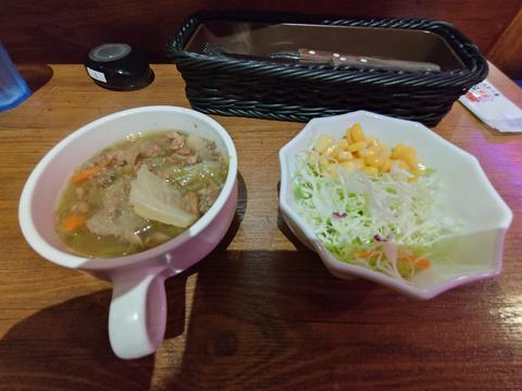 ステーキにはスープ,サラダ,ライスが付きます.