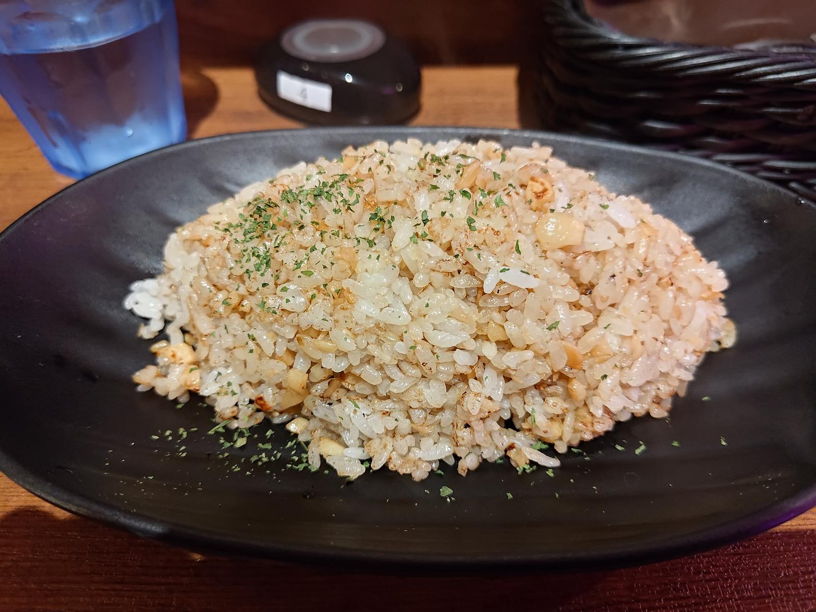 ライスはついてますが,人気メニューとのことで追加でガーリックライスも注文.