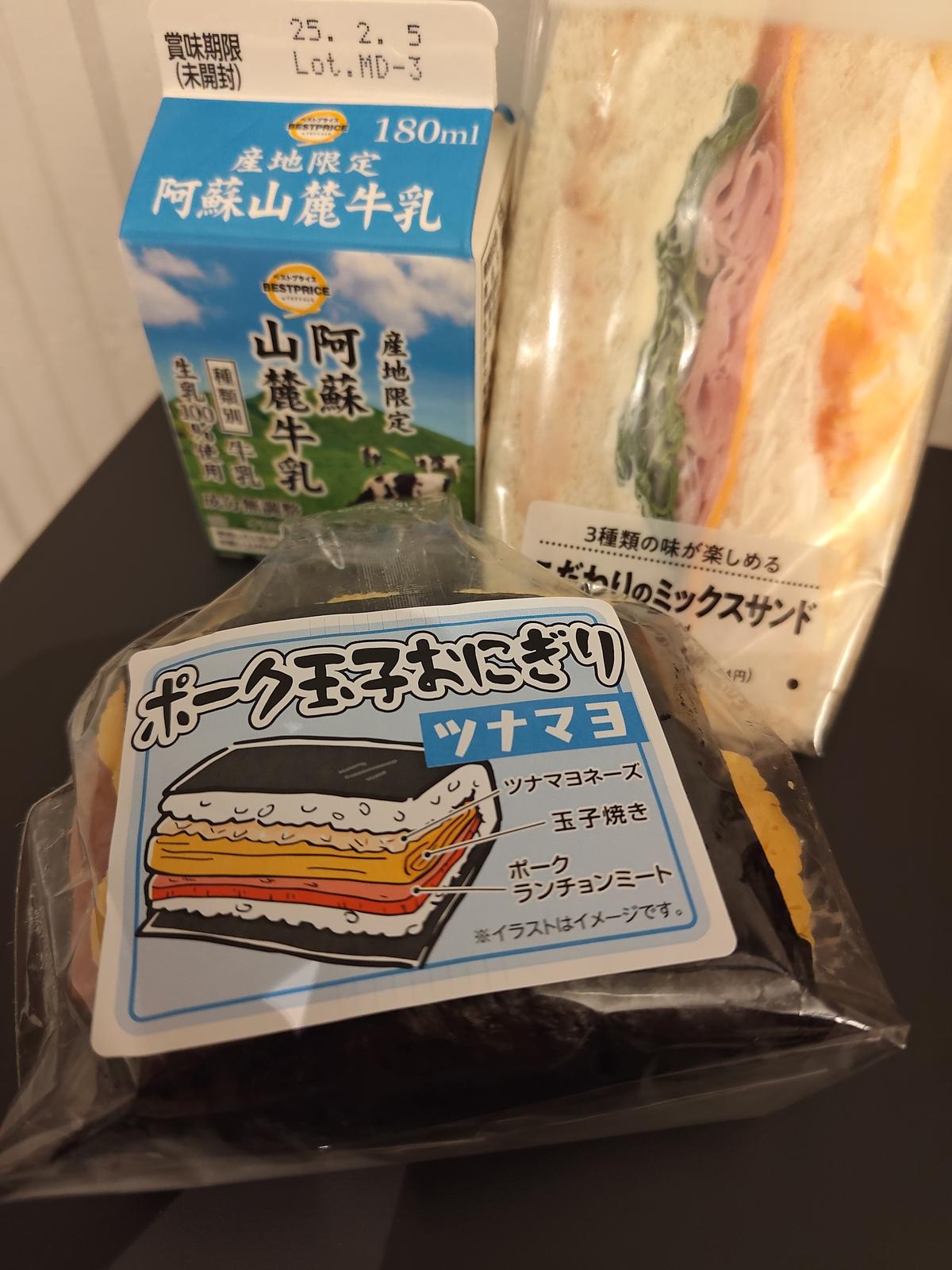 朝食に沖縄料理の店に行くも食べられず 2025/2/1(1年前) 旅, 沖縄, 食べ物 朝食にも沖縄料理を食べようと,朝からやっている沖縄料理店を調べて行ってみましたがなぜかやってませんでした・・・ 他に朝からやってる沖縄料理店は見つからなかったので,マックスバリュでポーク玉子おにぎりを買ってホテルで食べました.