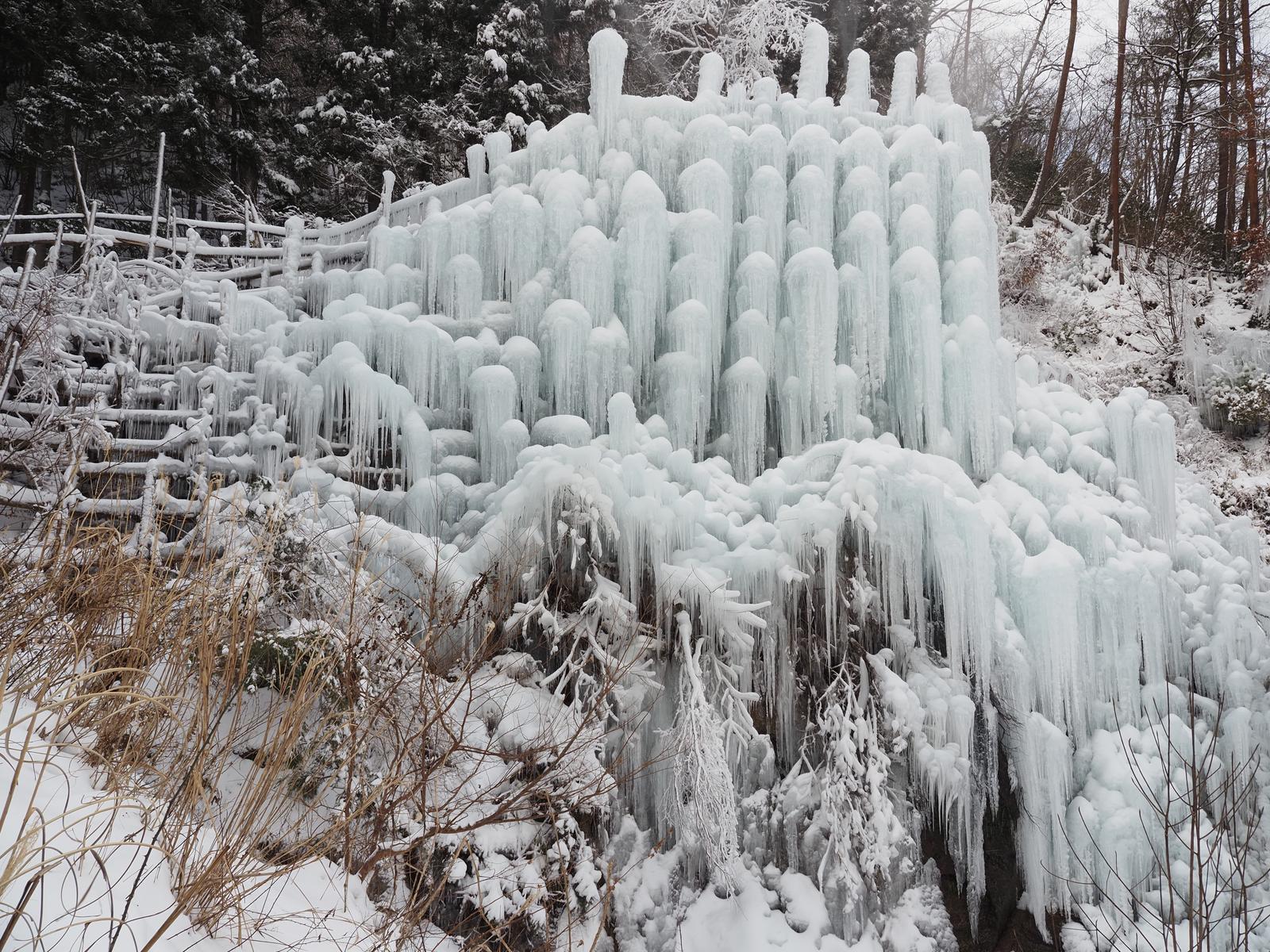昼の湧水広場の氷瀑 2025/2/8(1年前) 写真, 愛知, 旅, 日記 稲武にある湧水広場の氷瀑に行きました. ここへは過去に何度か来ていますが,昼間来るのは初めてです. 昼は夜とはまた違った雰囲気です. 手前の木の棚には過去はつららがびっしりでしたが今年はないですね. 上に登る道がありました. 初めて知りました. そこからの眺め.
