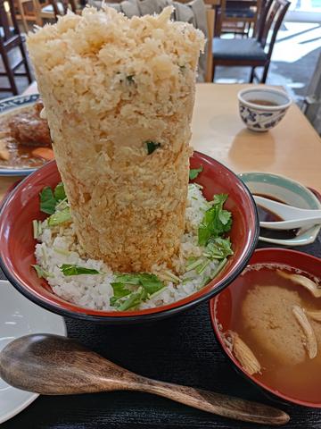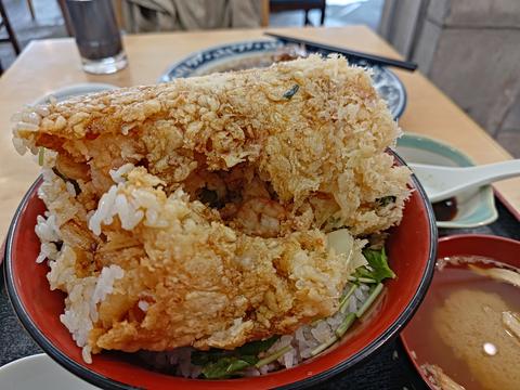 この海鮮かき揚げ丼がかなりボリューミー.かき揚げが中までびっしりつまってます.