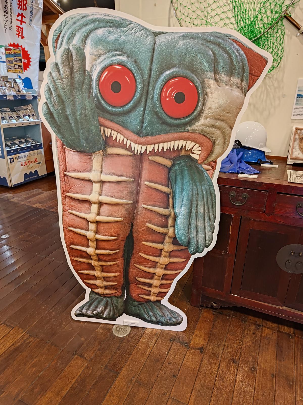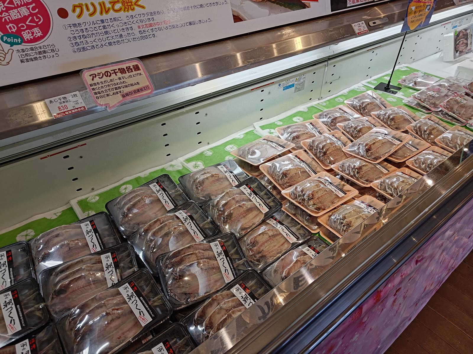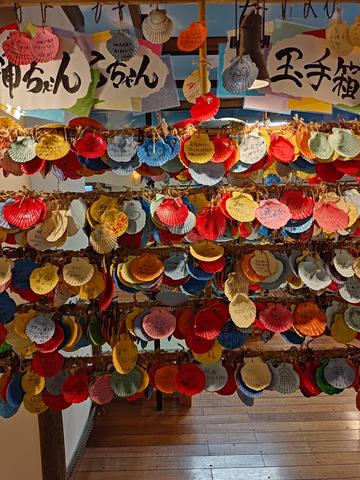 竜宮海鮮市場 2025/2/15(1年前) 旅, 東海, 静岡, 食べ物 沼津のアジの干物でも買って帰ることにしました. いくつかのスーパーを回りましたが,どこもアジの干物は沼津加工でした.ただ沼津で揚がったアジではなかったです. 最後に訪れたのは街道の駅 竜宮海鮮市場. アジの干物が多くありましたがやはり他のアジを沼津で加工したものでした. 怪人みたいなアジのキャラクター. 休憩所.広くて過ごしやすそうです. 浦島太郎のストーリーが描かれた壁.. 貝の絵馬. なかなか面白い施設でした.