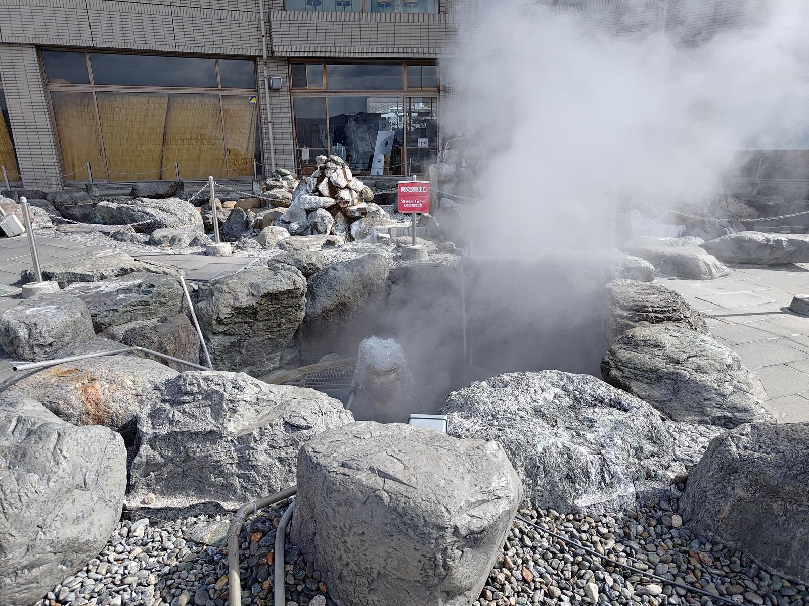 目の前に間欠泉があります.間欠泉は今は噴出はしないです.