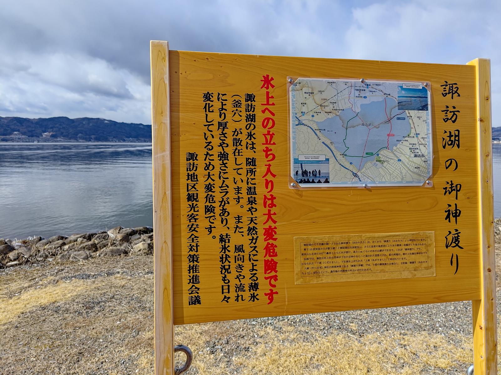 御神渡りの看板がありました.これは前回のときのもの.自分が見れたやつです.