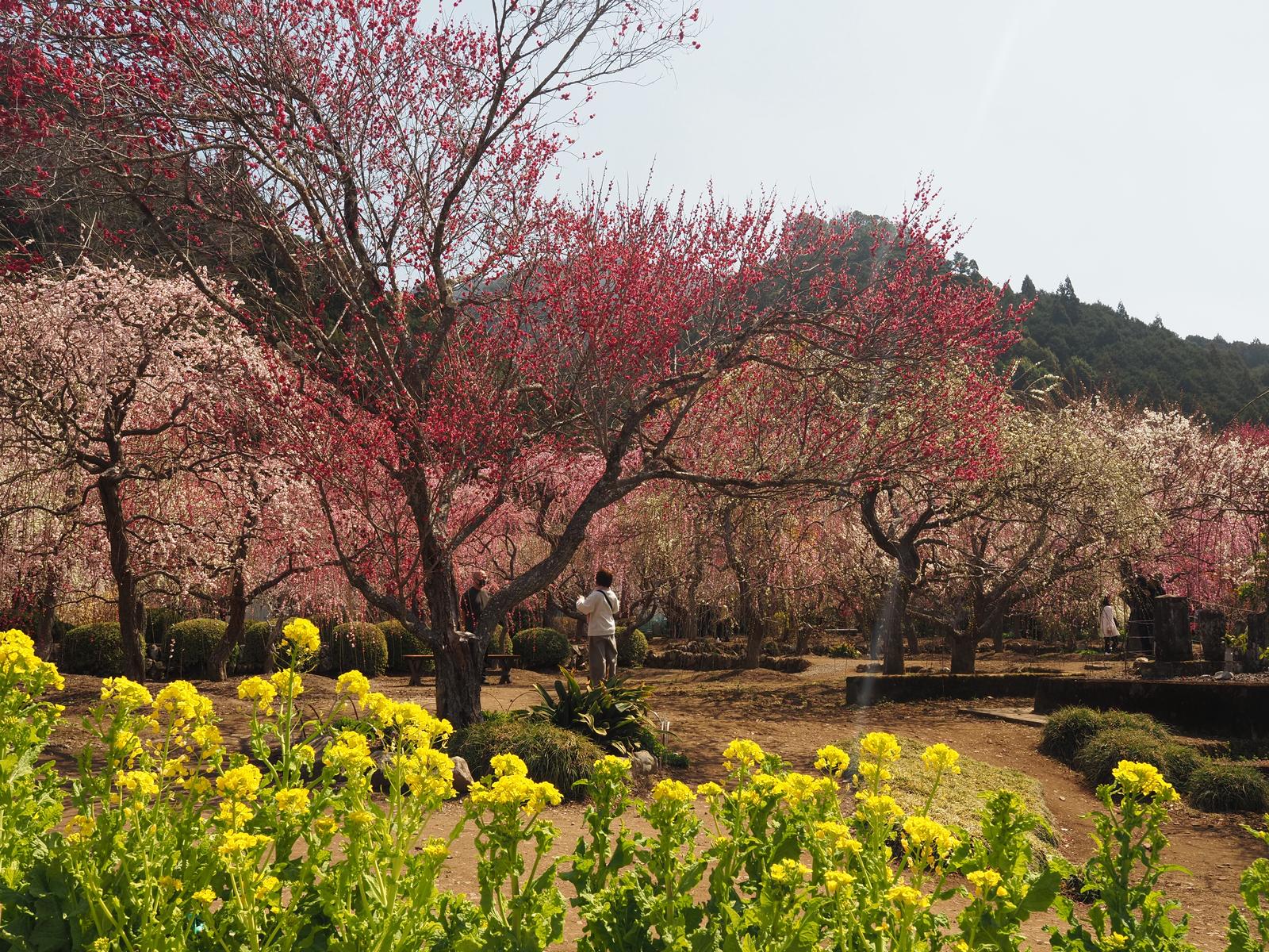 木下しだれ梅園 2025/3/22(1年前) 写真, 愛知, 旅, 東海 今年は梅の開花が遅く,3月も下旬になってようやく開花してきました. ということで訪れた木下しだれ梅園.個人でやってる梅園だとか. 入園料は300円.入口にPayPayのQRコードがありそれで払うことも可能です. 見事なしだれ梅がたくさん. ベンチや花壇などもよい演出です. 素晴らしい青空に梅も映えます. 外に出て菜の花越しに梅.