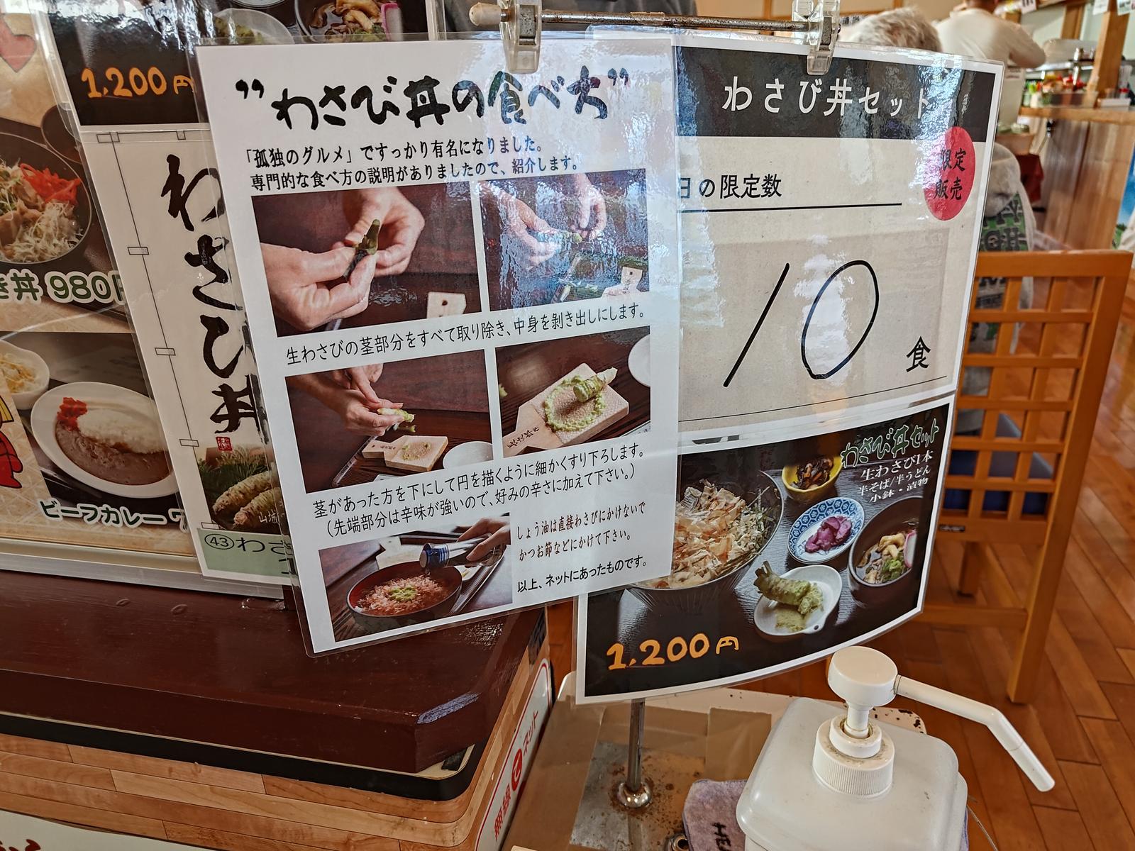 温泉に入ってから昼食を食べに食堂へ行くと,わさび丼がありました.