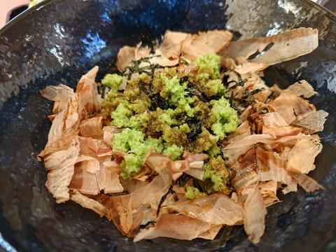 わさびをすってのっけて普通の丼のようにかっこんだら,普通にわさびの辛さが直撃してえらいめにあいました.