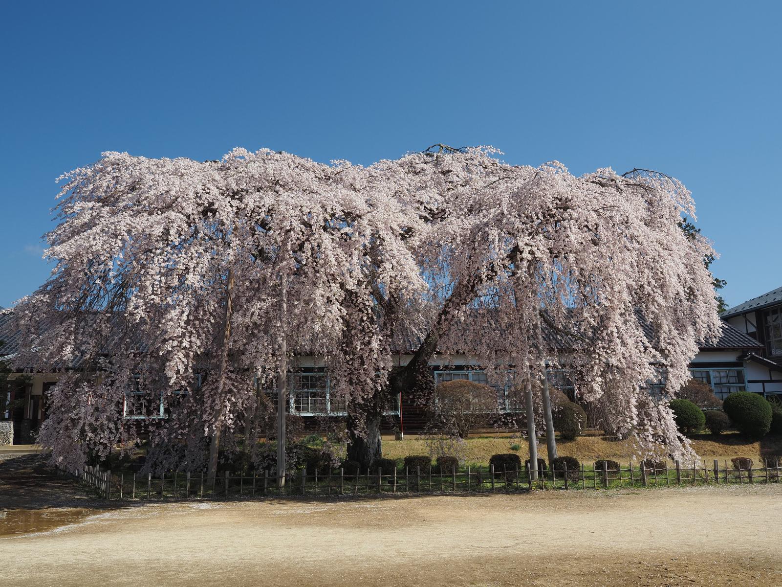 杵原学校の大枝垂れ桜 2025/4/12(12か月前) 写真, 旅, 甲信越, 長野 この日は飯田・駒ヶ根の桜を巡りました. 最初に行ったのは杵原学校. 大枝垂れ桜が満開. 天気にも大変恵まれました. 校舎がバックというのもいいシチュエーションです.