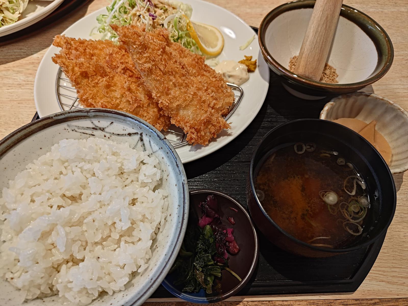 アジフライ定食@うおとも 2025/4/28(11か月前) 千葉, 日記, 関東, 食べ物 この日の昼食はちょっと遠出して外房の方へ行きました. 行ったのはうおとも. さすが人気店で,開店直後に行ったにもかかわらずほぼ満席. 頼んだのは大人気のアジフライ定食. せっかくなので刺身も注文. せっかく来たので九十九里浜も見に行きました. 蓮沼の展望塔に登ってみましたがここから海は遠かったです. 屋形海岸に行って砂浜を見て満足して帰宅.