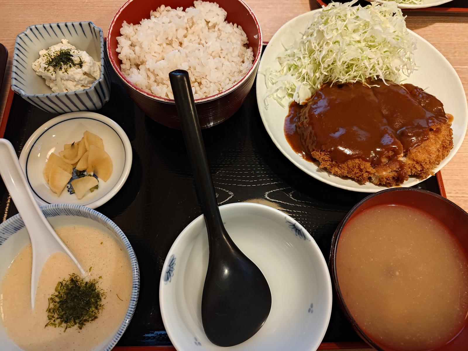 とんかつと麦とろのセット定食@とんかつどん平 2025/5/30(10か月前) 旅, 東京, 関東, 食べ物 以前から行きたかった店に行きました. 都電荒川線の尾久駅で友人と待ち合わせ. 行きたかった店はとんかつどん平. とんかつが独特とラジオで紹介されていました.また孤独のグルメに出てきた店です. とんかつと麦とろのセット定食を注文. 角煮のように軟らかく煮た肉を揚げているとんかつで,柔らかく濃厚でした.