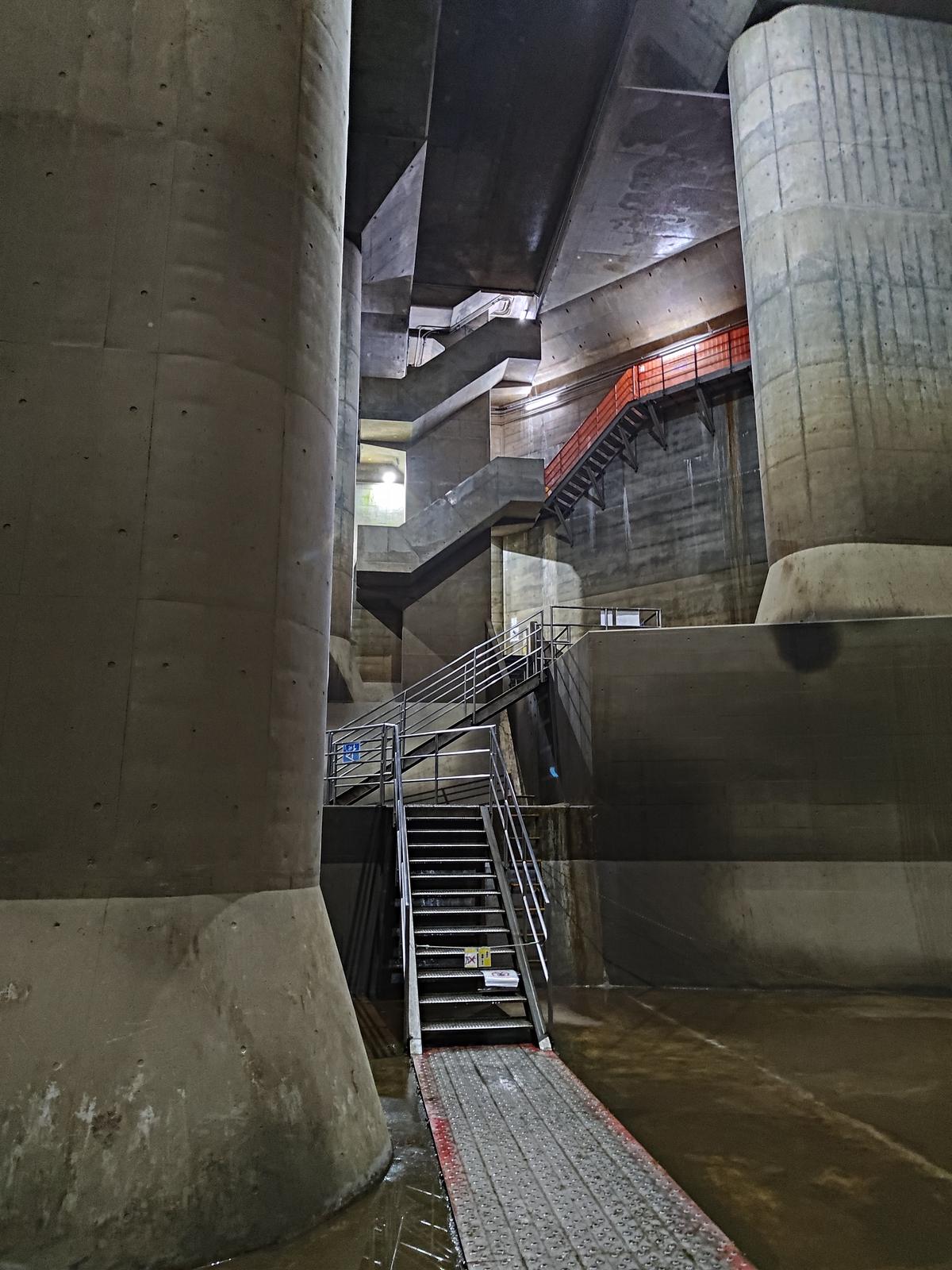 首都圏外郭放水路見学会はいくつか種類があり,今回は調圧水槽の他にポンプが見学できるコースでした.