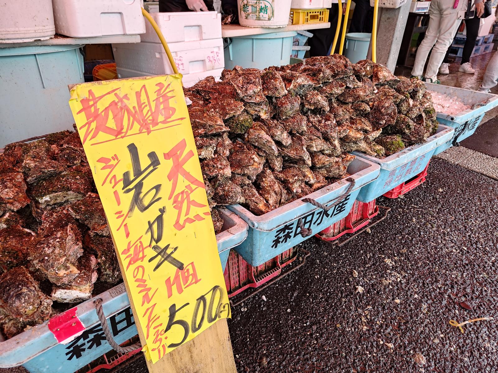 那珂湊おさかな市場 2025/5/31(10か月前) 旅, 茨城, 関東, 食べ物 この日の前半は茨城観光をすることにしました. 海の方へ行き,那珂湊おさかな市場へ. 雨が降っていていつもより人は少ないとのこと. 様々な魚介が安く売っていました. すぐ帰れれば色々買って家で食べていたところです. 生カキを食べることにしました. 岩カキの方が高いですが高い分きっとうまいのでそちらにしました. せっかくなので別のもう1軒でもカキを食べました. こちらでは地元の岩カキがさっきより安く売ってました・・・ まあどっちも美味しかったです.