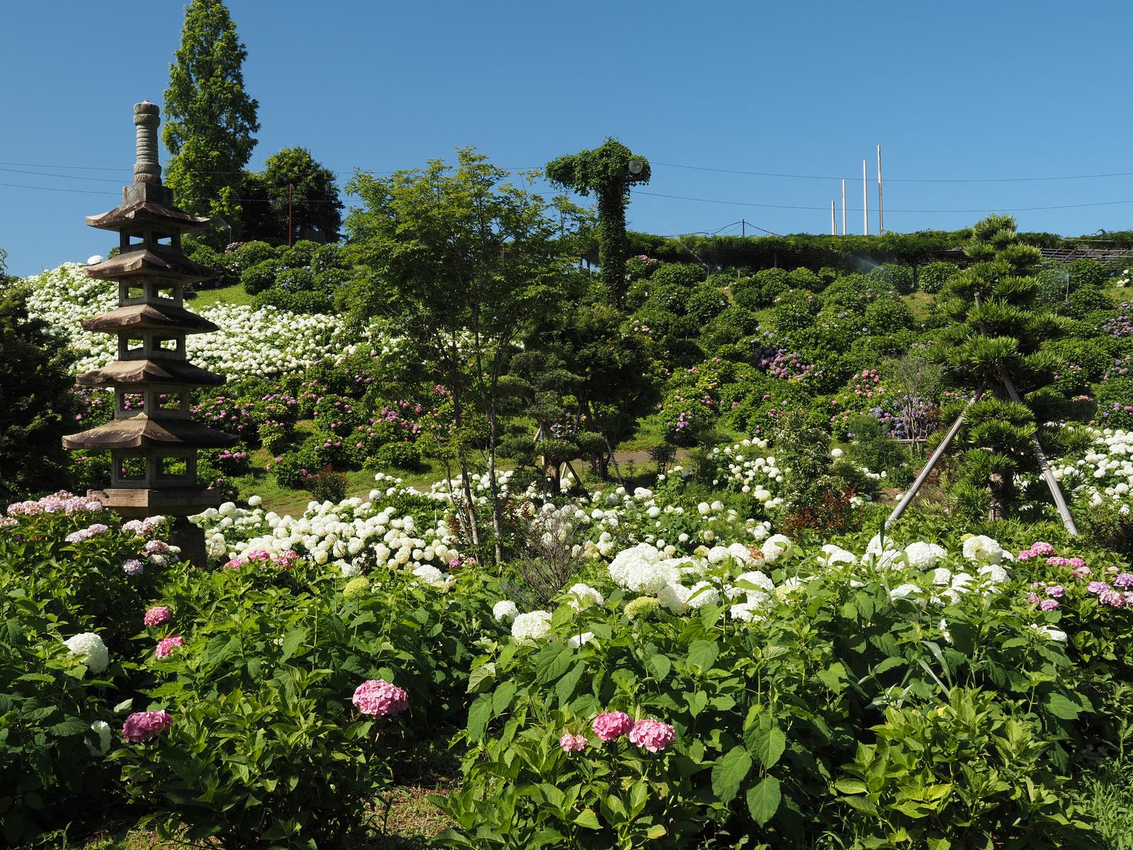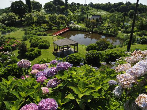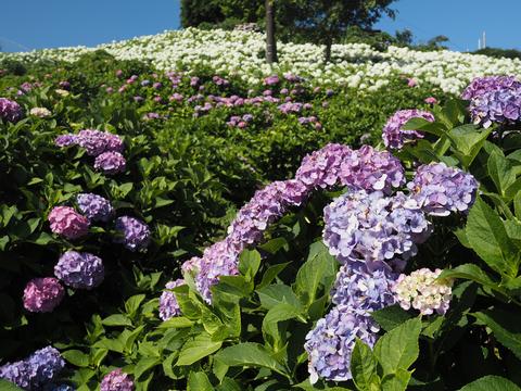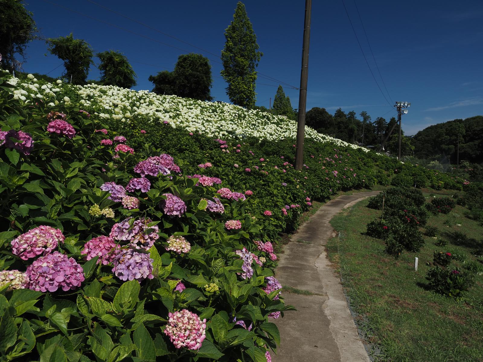 受付からしばらく道を歩きましたが,道を抜けると広大な場所にあじさいが咲いていました.