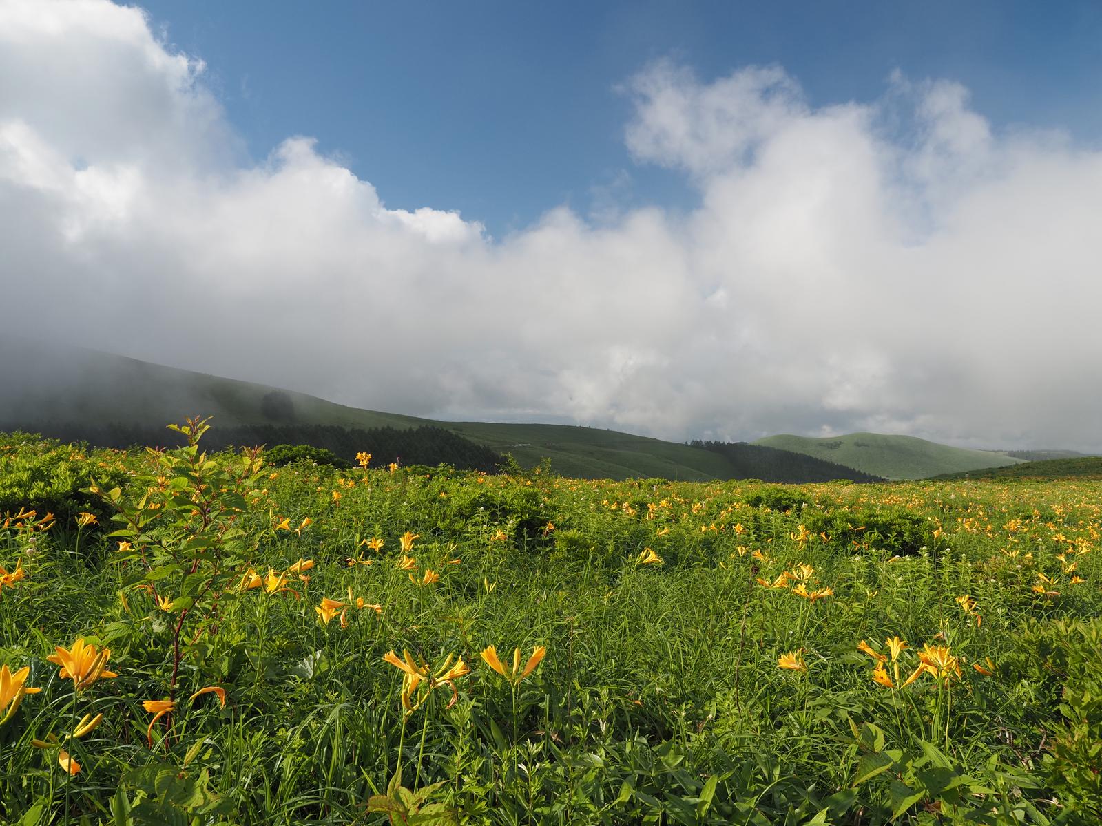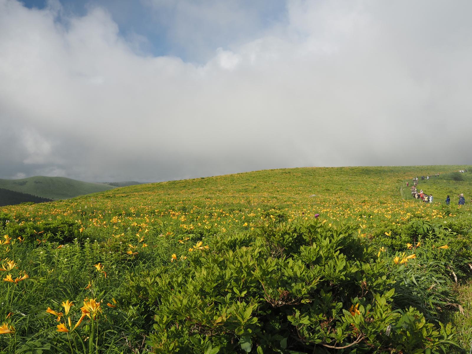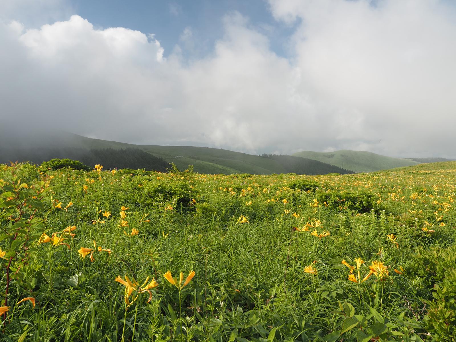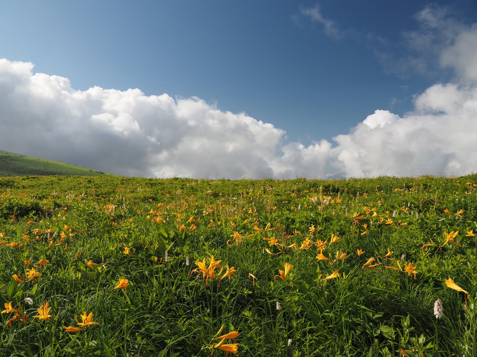 満開のニッコウキスゲを良い天気の中で撮影することができました.