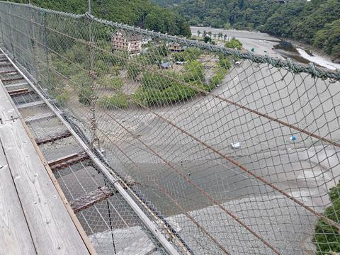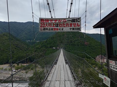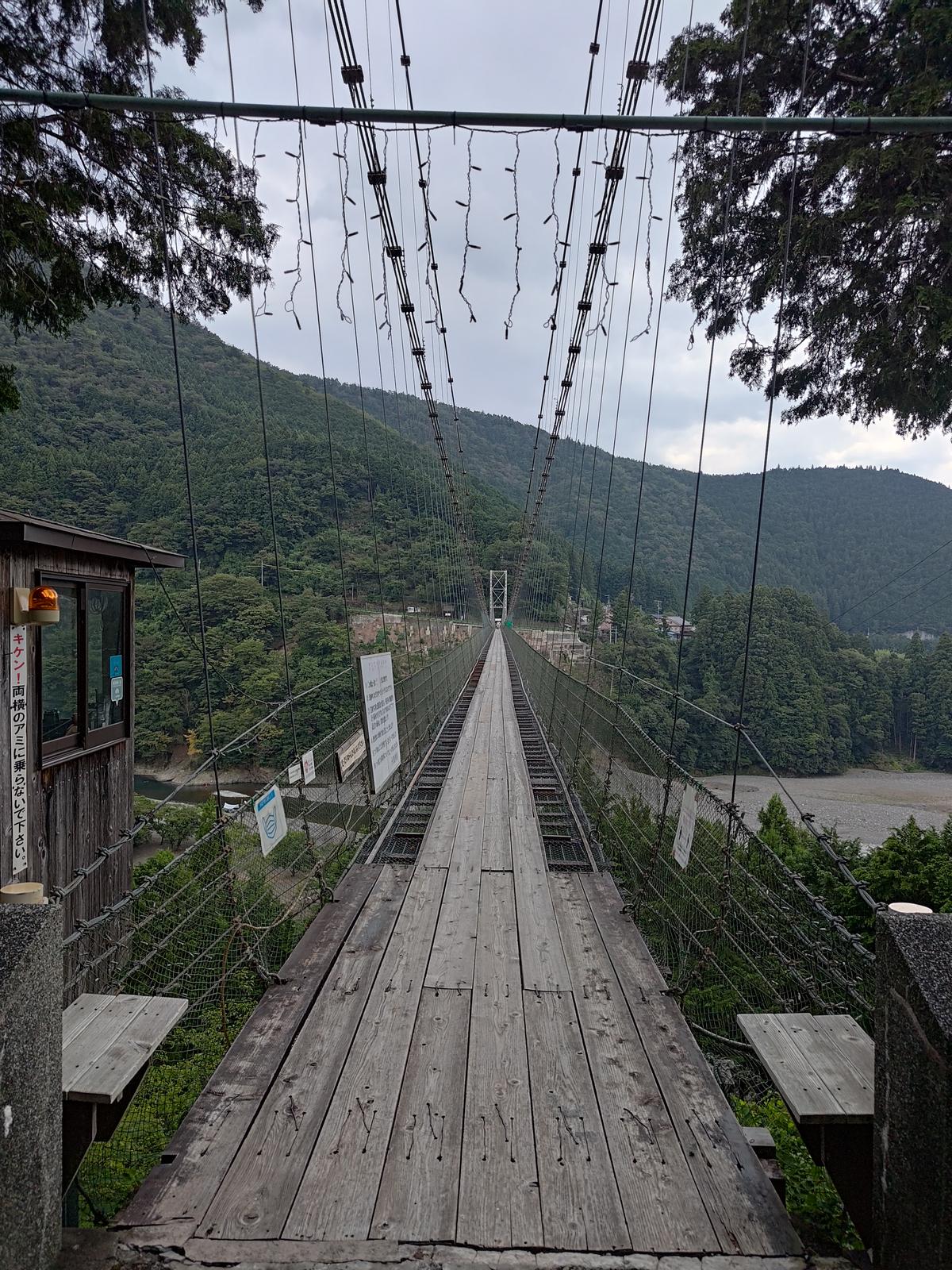 昼の谷瀬の吊り橋 2025/8/8(8か月前) 写真, 奈良, 旅, 近畿 以前谷瀬の吊り橋に来たときは夜だったので,今度は昼に来てみました. 昼なので下の方もよく見えます. 下はキャンプ場で穏やかな光景が広がっています. しかしはるか上にかかる橋にいる方は心穏やかならずです. 今回は逆まで渡り切りました. 茶店がありますがやってませんでした.