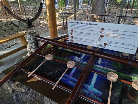 やたら明るい桶の手水場.