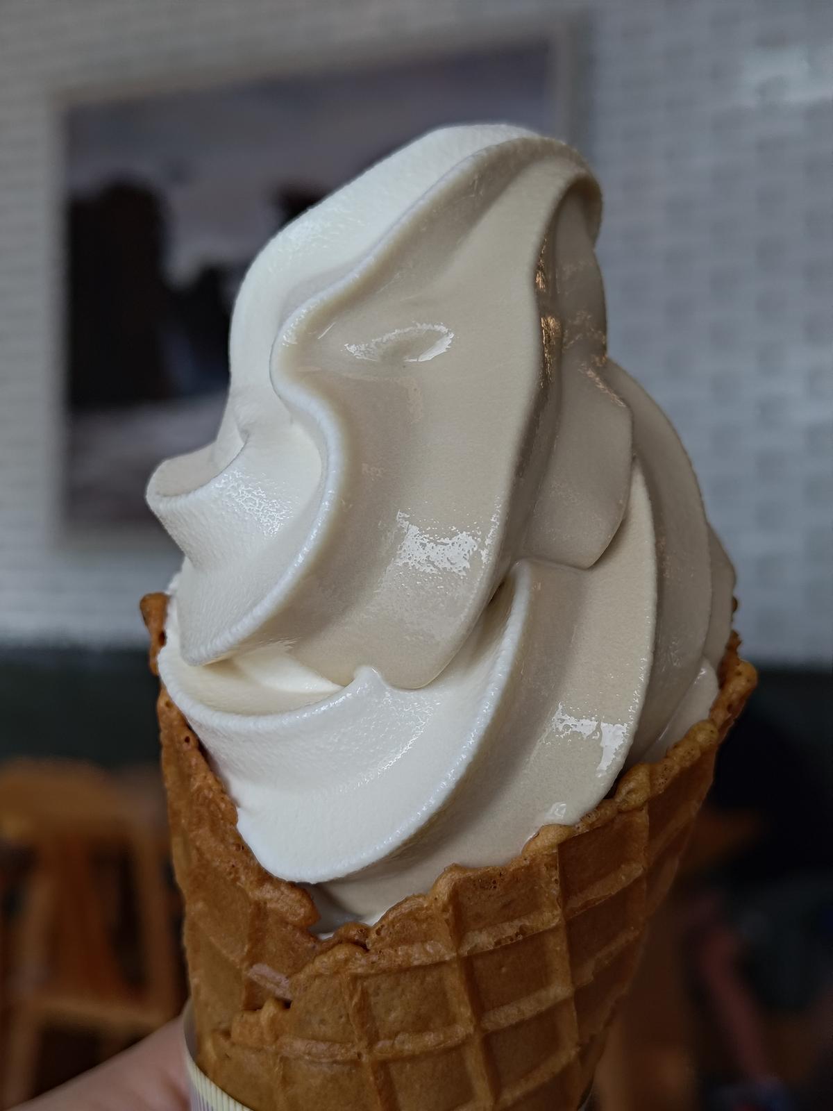 とりあえずテーブルに座りソフトクリームを食べながらどうしようかとダラダラしていたら,レストランが開店する時間になり食券販売機の前に行列ができました.