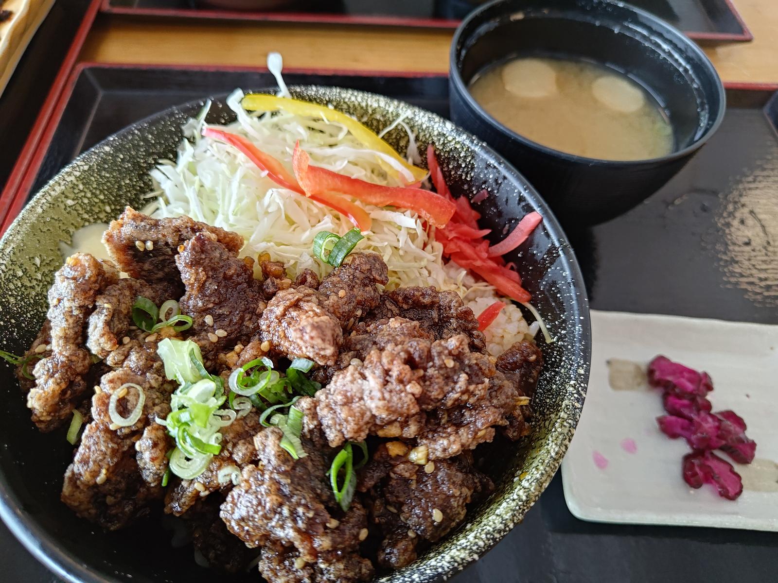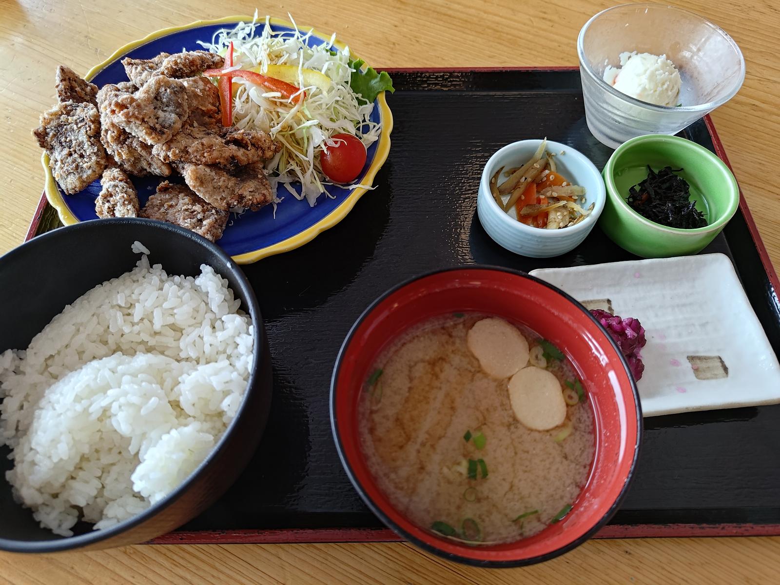 鯨竜田揚げ定食と鯨スタミナ丼を注文し友人とシェア.