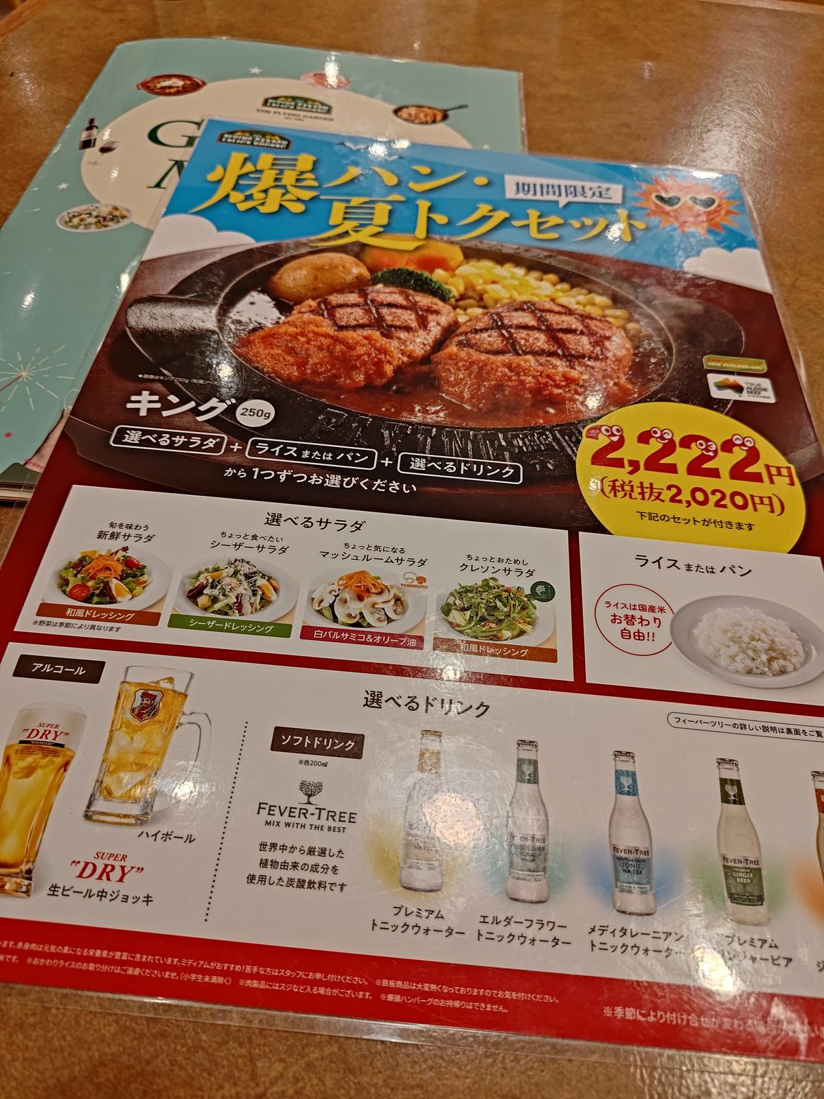 爆ハン夏トクセット@フライングガーデン佐倉店 2025/8/13(8か月前) 千葉, 旅, 関東, 食べ物 千葉の実家に帰る前にこちらでしか食べれないものを,ということで佐倉にあるフライングガーデンに行きました. フラガは主に北関東で展開していますが,千葉にも数店舗あります. 爆ハン夏トクセットというのがあったのでそれにしました. サラダとジンジャービア. ジンジャービアはソフトドリンクです.辛口でおいしかったです. そして爆弾ハンバーグ. にんにくが効いていて美味です.