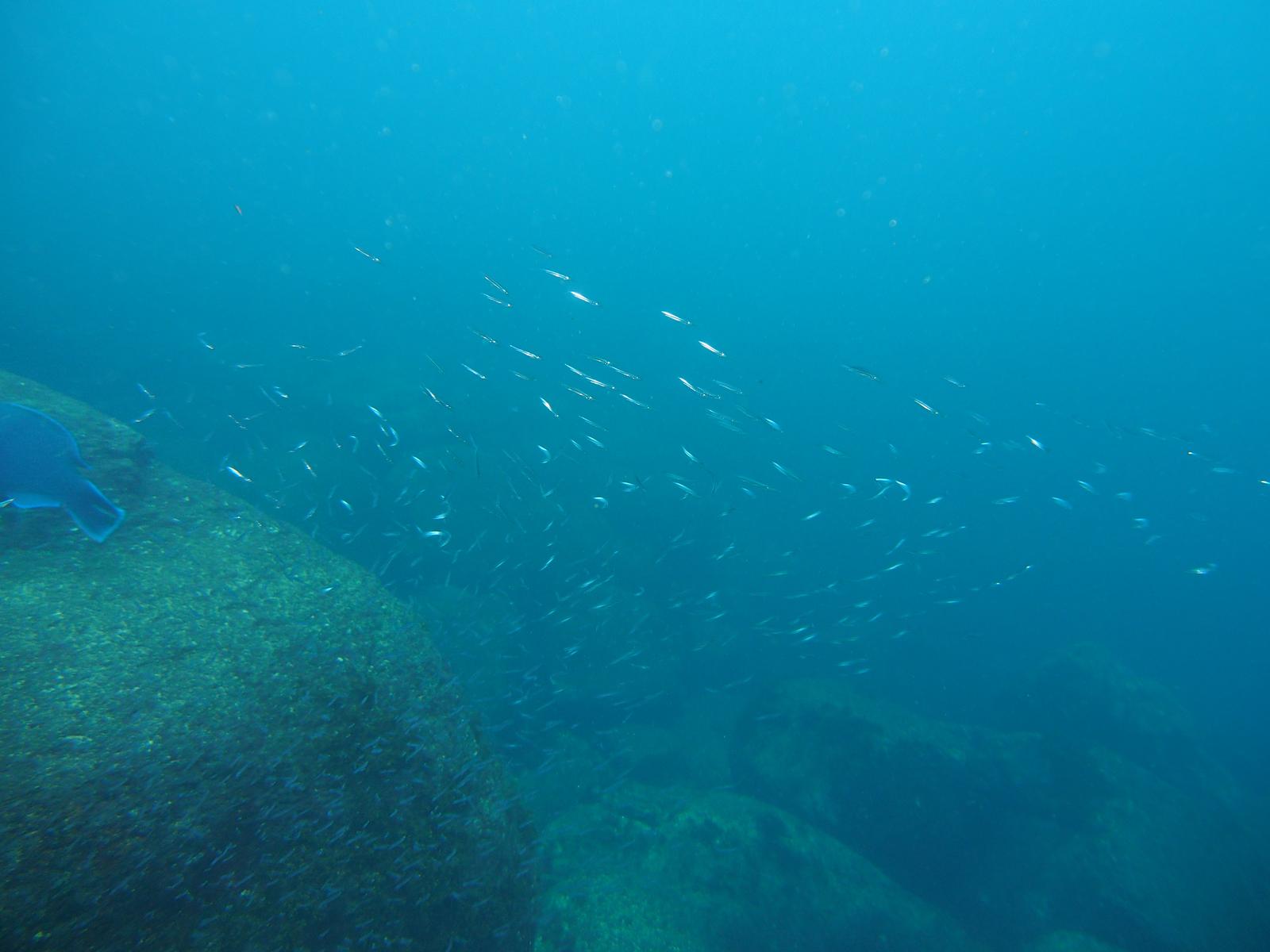 魚の群れが見られるということで,入ってすぐキビナゴの群れ.