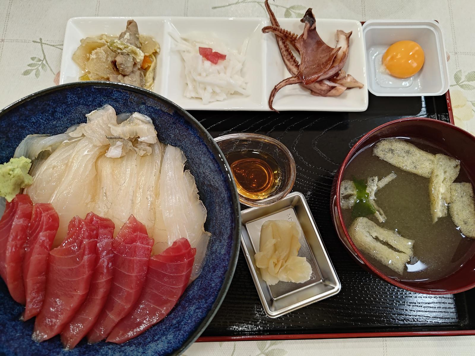 まぐろ・ひらめ漬丼@食事処いち 2025/10/18(6か月前) 旅, 東北, 青森, 食べ物 天気が良ければ紅葉の名所に行こうと思っていましたが,天気はあいにくの雨ということで下北半島の方に行くことにしました. とりあえず下北駅へ.本州最北端の駅です. 下北半島の観光案内版. 列車が なおこの駅は終着駅ではないので普通に停車してから発車しました. 下北の名物はヒラメ漬け丼とのことだったので食べに食事処いちという店に行きました. 宿と併設の店のようです. まぐろとヒラメの漬け丼を注文. マグロは大間産ですかね. おいしかったです. 朝どれの真イカがあるとのことで刺身を注文. 透明で鮮度が高いことがうかがえます. コリコリでおいしかったです. ウニも名物のようでしたが時期外れでありませんでした.