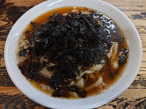 岩海苔の下には刻み玉ねぎが.麺は太め.