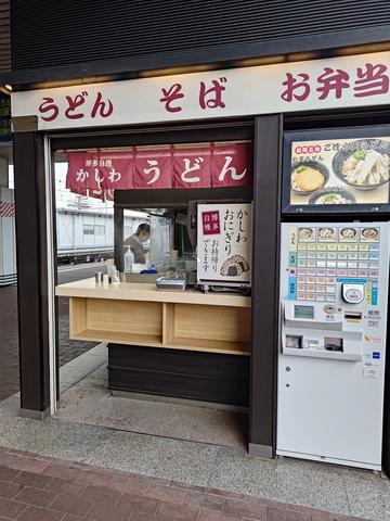 博多駅に居られる時間は10分ほどでしたが何か地元名物を食べたいと思い,それができそうな駅ホームの立ち食いうどん店に行きました.