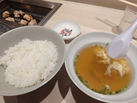 焼き鳥定食のスープと白飯.