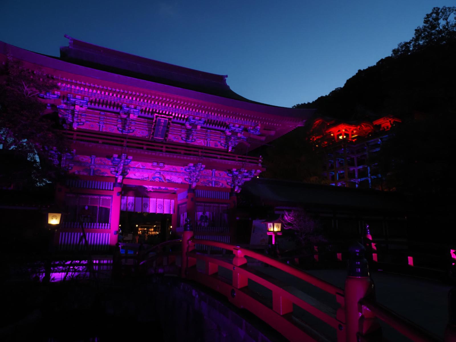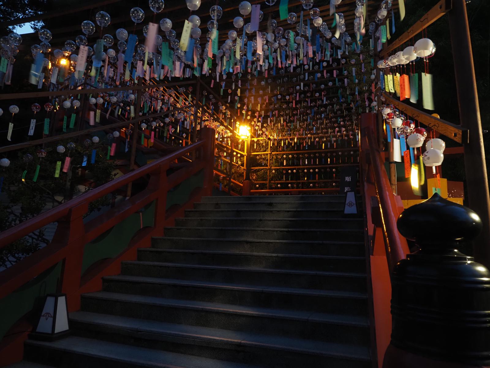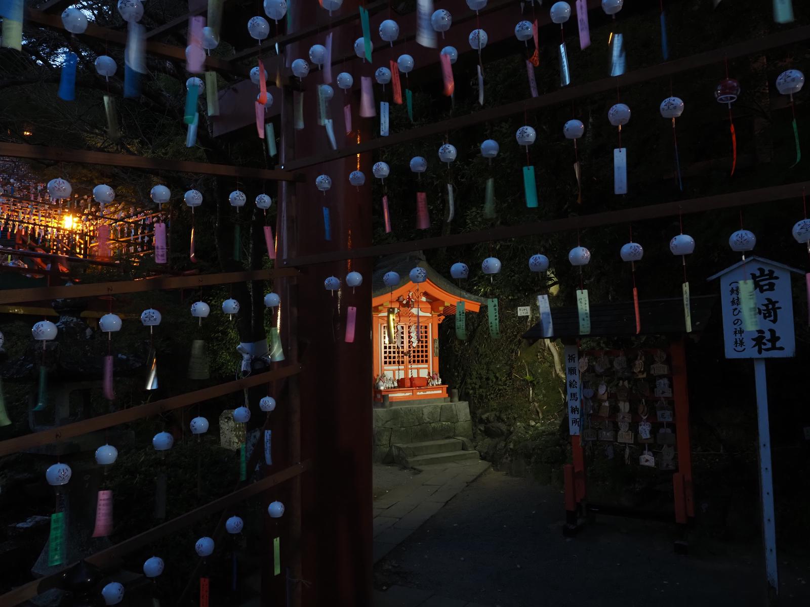 祐徳稲荷神社 奥の院 2025/11/1(5か月前) 九州, 佐賀, 写真, 旅 奥の院への看板があったので,行ってみることにしました. 道には千本鳥居. 急な道が続きました. ゆっくり登りなんとかたどり着きました. 展望台の休憩所は既にしまっていました. 来た道とは別の道で帰ります. 眺めは良いですが急で大変そうでもあります. 帰りにも千本鳥居. 本殿まで降りてくるとすっかり日が暮れていました. 風鈴が灯りに照らされて昼とは全く違った景観になっていました. 本殿も楼門も祠もライトアップされていました. 門前の道もいい感じでした.