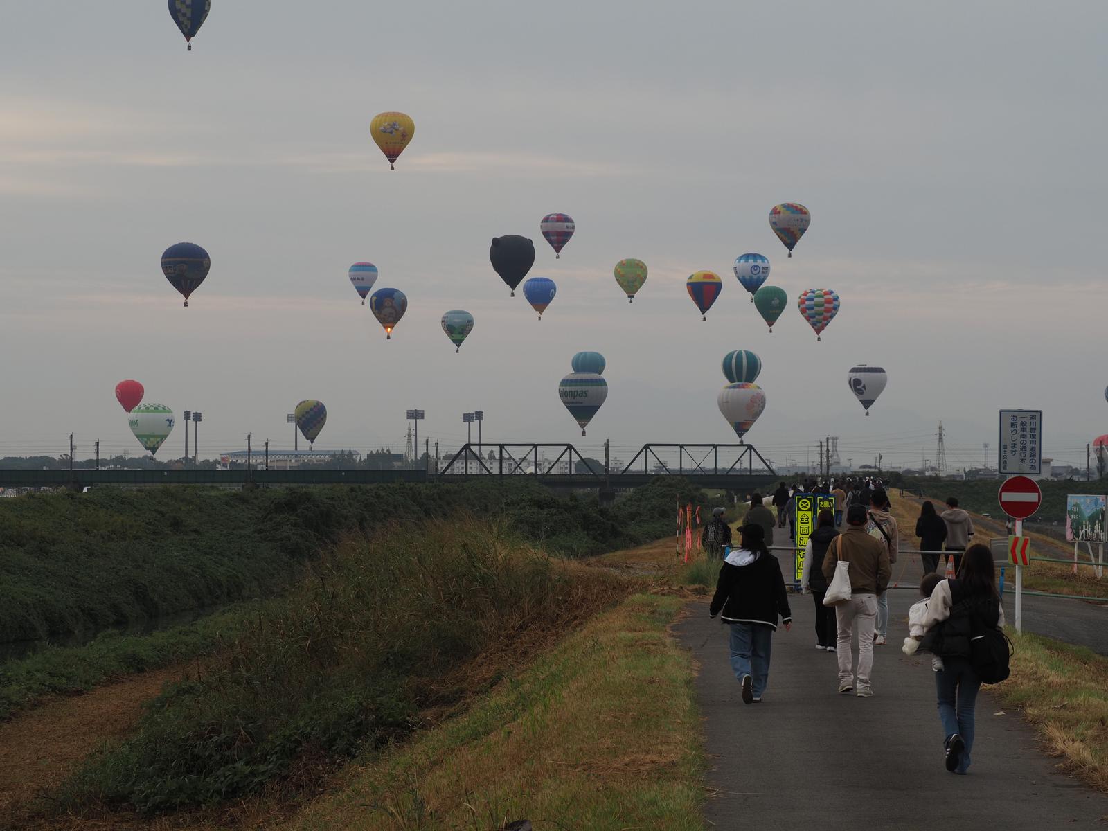 川を渡るには結構離れたところにある橋を渡る必要がありますが,渡っているときに気球がガンガン離陸していきました・・・