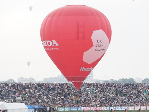 ひとつだけ観覧席の間近を飛ぶ気球がありました.