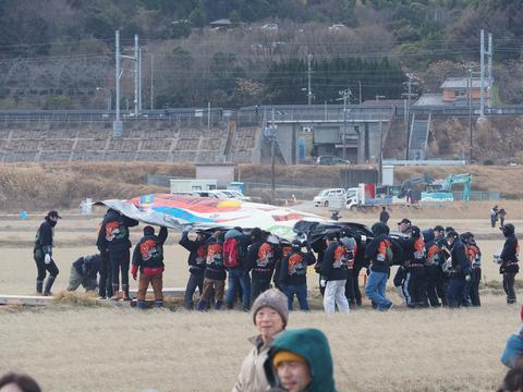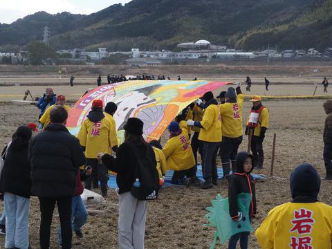 こうた凧揚げまつり 大凧揚げ 2026/1/11(3か月前) 写真, 愛知, 東海 大凧揚げ開始の宣言がされて準備が始まりました. 大凧が大人数で運ばれて行きます. しかし風が強いせいかなかなか凧を揚げようとしません. 何組か揚げますが墜落・・・ http://albatross.kilo.jp/pictures/2026/aichi/V20260111_1136s.mp4 ようやくひとつの凧が揚がりました. 揚げるときが一番大変で,揚がってしまうと安定するようでした. http://albatross.kilo.jp/pictures/2026/aichi/V20260111_1132s.mp4 その後もいくつかの凧は揚がらず,いくつかの凧は揚がりました. 大凧が揚がるのを見れたので帰ることにしました. 会場の端ではちょっと変わった凧が揚げられていました. ということで去年は見逃した大凧揚げですが今年はちゃんと見ることができました.