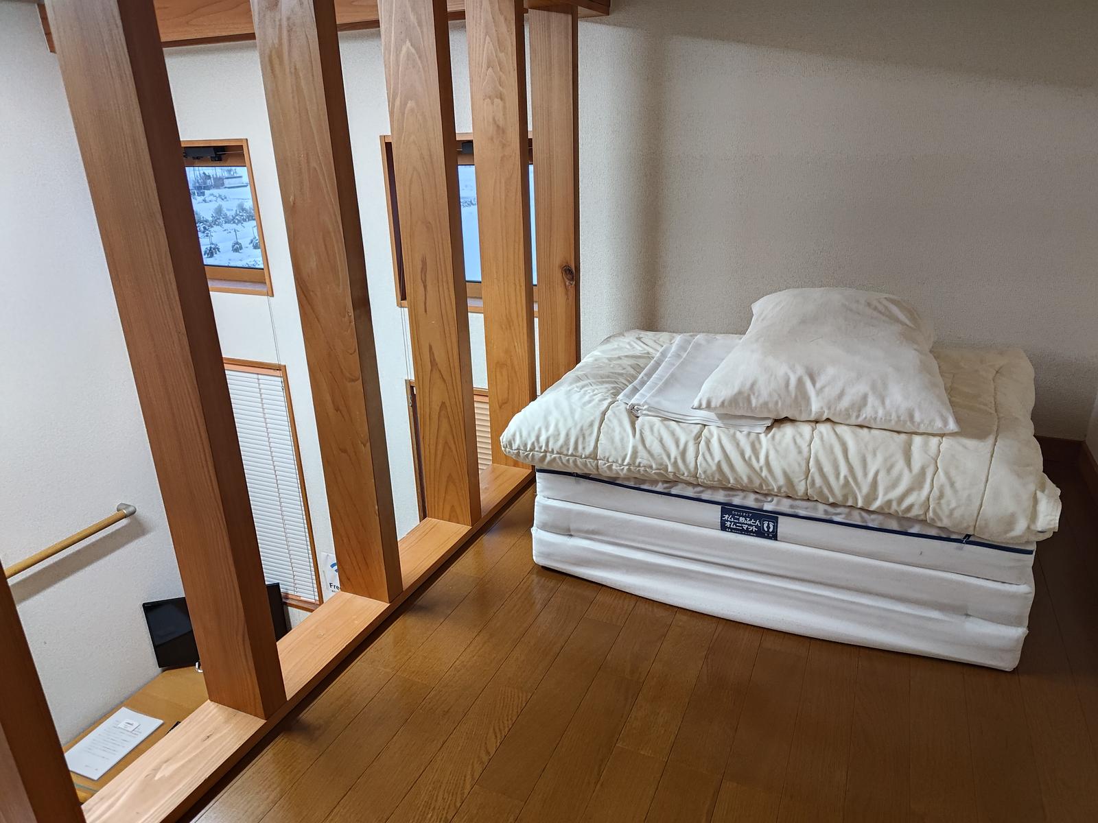 実際ロフトで寝ました.エアコンをつけると思った通り暑くなったのでエアコンを切って布団にくるまりながら寝ました.