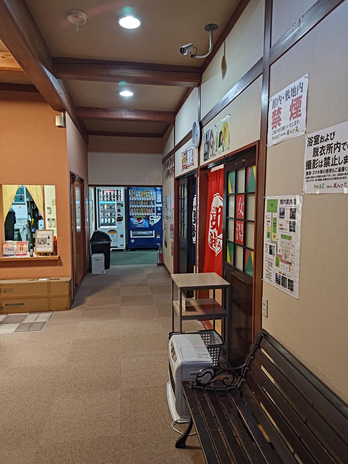 月岡温泉 共同浴場美人の泉 2026/2/6(2か月前) 新潟, 旅, 甲信越 前回入れなかった月岡温泉の共同浴場美人の泉に行きました. 当たり前ですが(?)今回は入れました. 広い休憩室が複数ありました. カップラーメン作っている人もいました. 浴室の入口. 硫黄臭のするエメラルドグリーンのお湯.よかったです. (共同浴場「美人の泉」) 足湯の方も身に行ってみました. 雪対策か前回は解放されていたところが色々閉まっていました. 演舞場が見える方もビニールがかかっていました. 雪降る温泉街.風情がありました.
