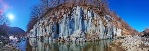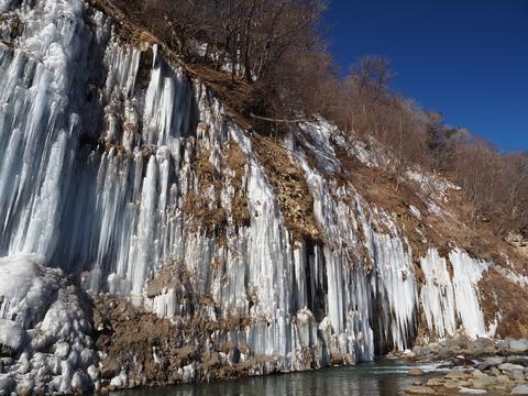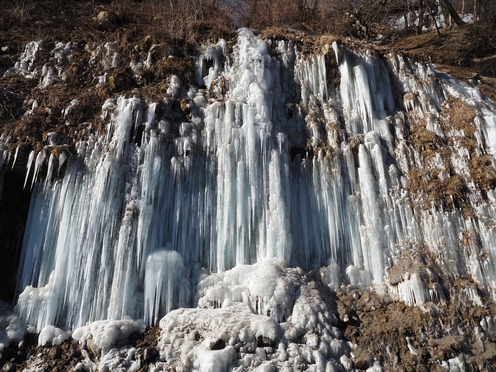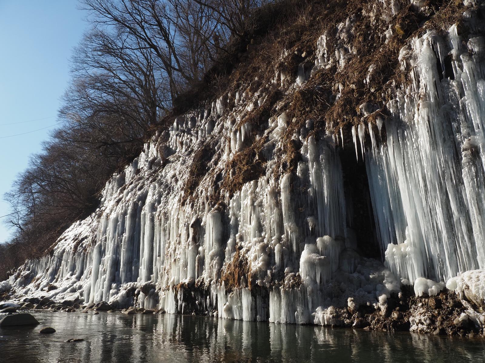 朝の白川氷柱群 2026/2/14(2か月前) 写真, 旅, 甲信越, 長野 まずは白川氷柱群を見に行きました. こちらは白川氷柱群の手前の庭の池.雪がほとんどないです. だからといって寒くないわけではありません.池の表面が凍ってます. この冬は記録的少雨とのことなので,そのせいだと思います. 氷柱群の方に行ってみます. 過去見たものより白い気がします. きっと夜のうちに凍って融けてないのでしょう. 午前に来たのははじめてで,初めての光景が見れました. 遠くの上の方にある氷柱群. これまた真っ白です.