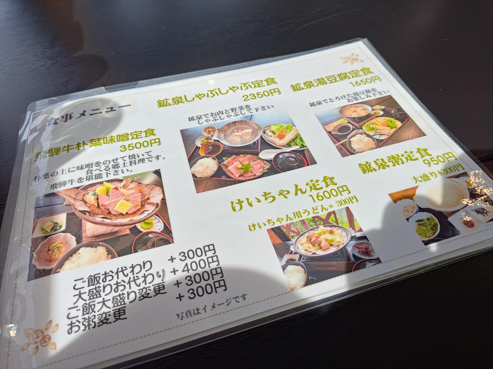 がっつり食欲を満たすには飛騨牛朴葉味噌定食や鉱泉しゃぶしゃぶがよいですが値が張ります.リーズナブルなのは飛騨の郷土料理 鶏ちゃんですね.