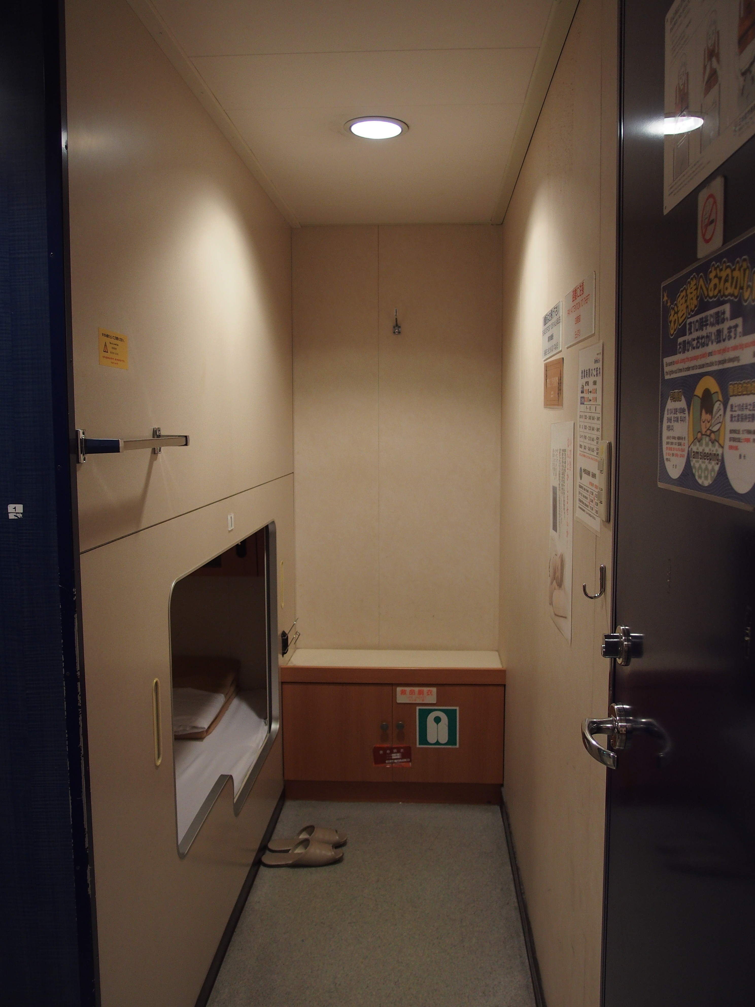 寝室は2等個室にしました.2階建てベッドになっていますが,入口は上と下で異なるようになっていました.
