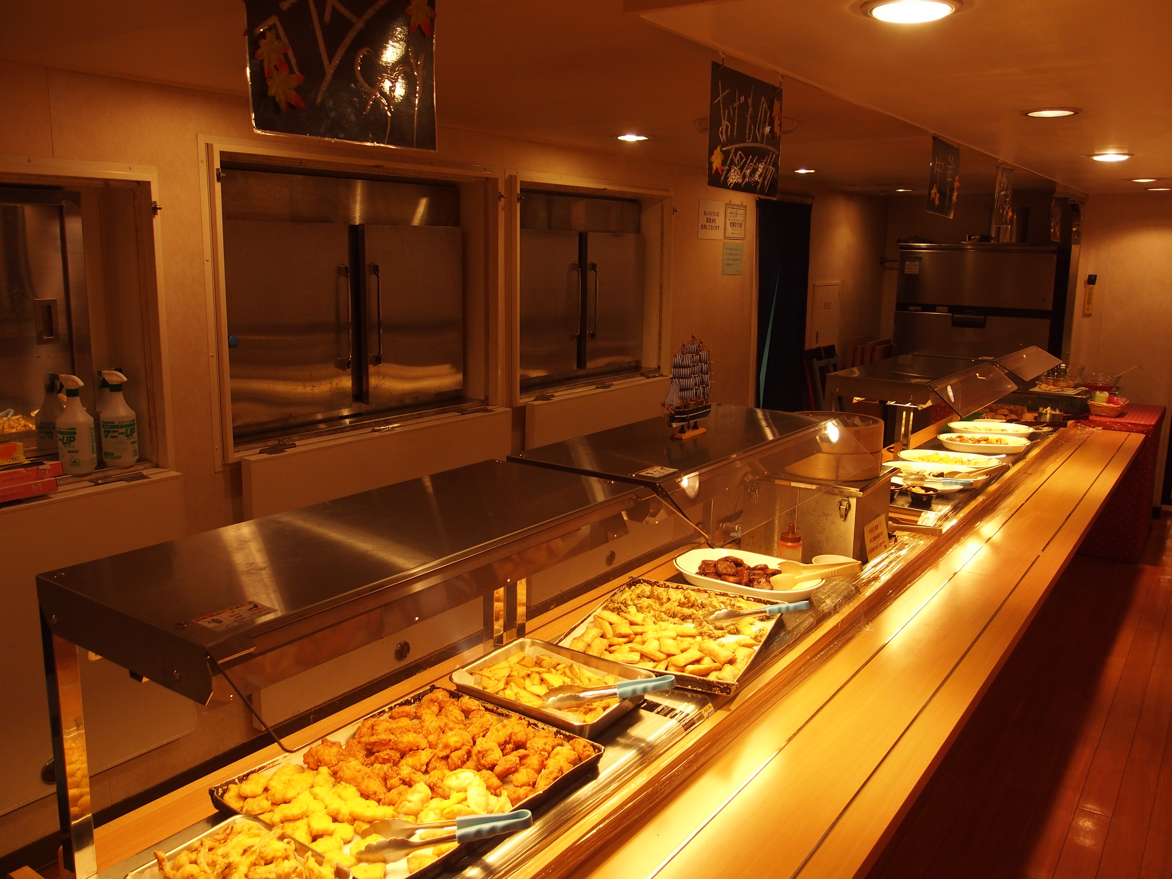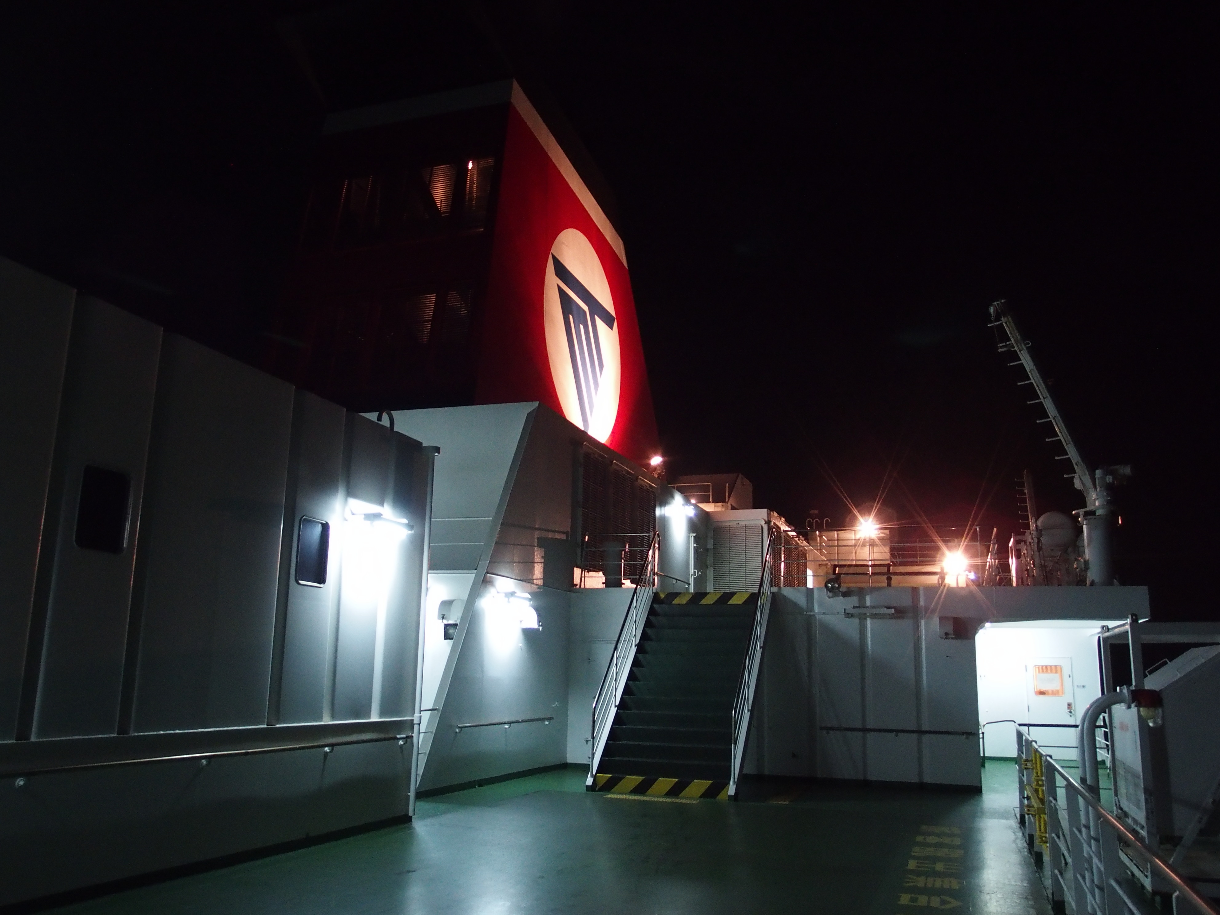 次の日には日本に台風が上陸するかという気象状況でしたが,フェリーはとても大きいので波による揺れは気にしない限りほとんど感じなかったです.ただエンジンによると思われる細かい揺れはあり,自動販売機もカタカタ行っていました.
