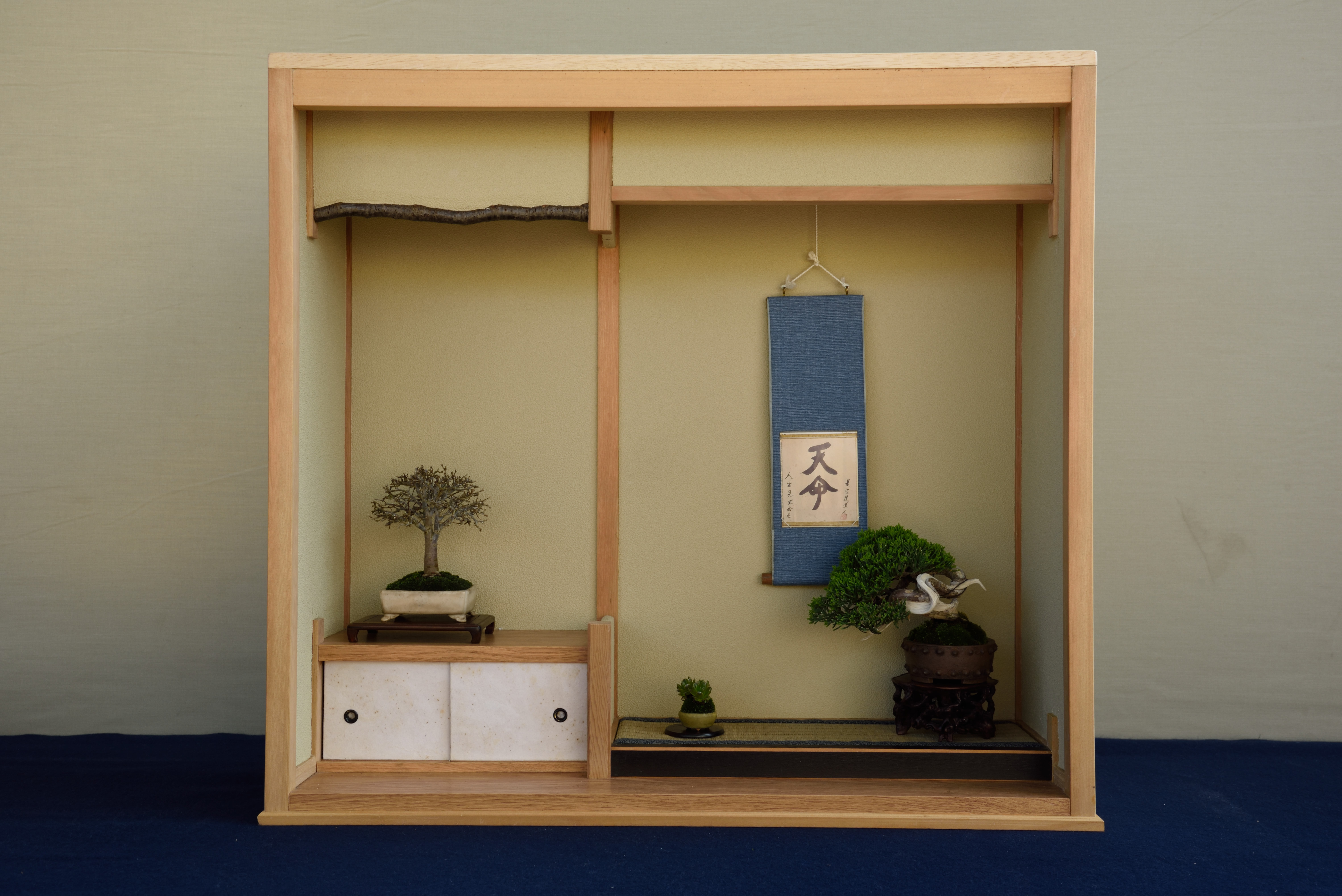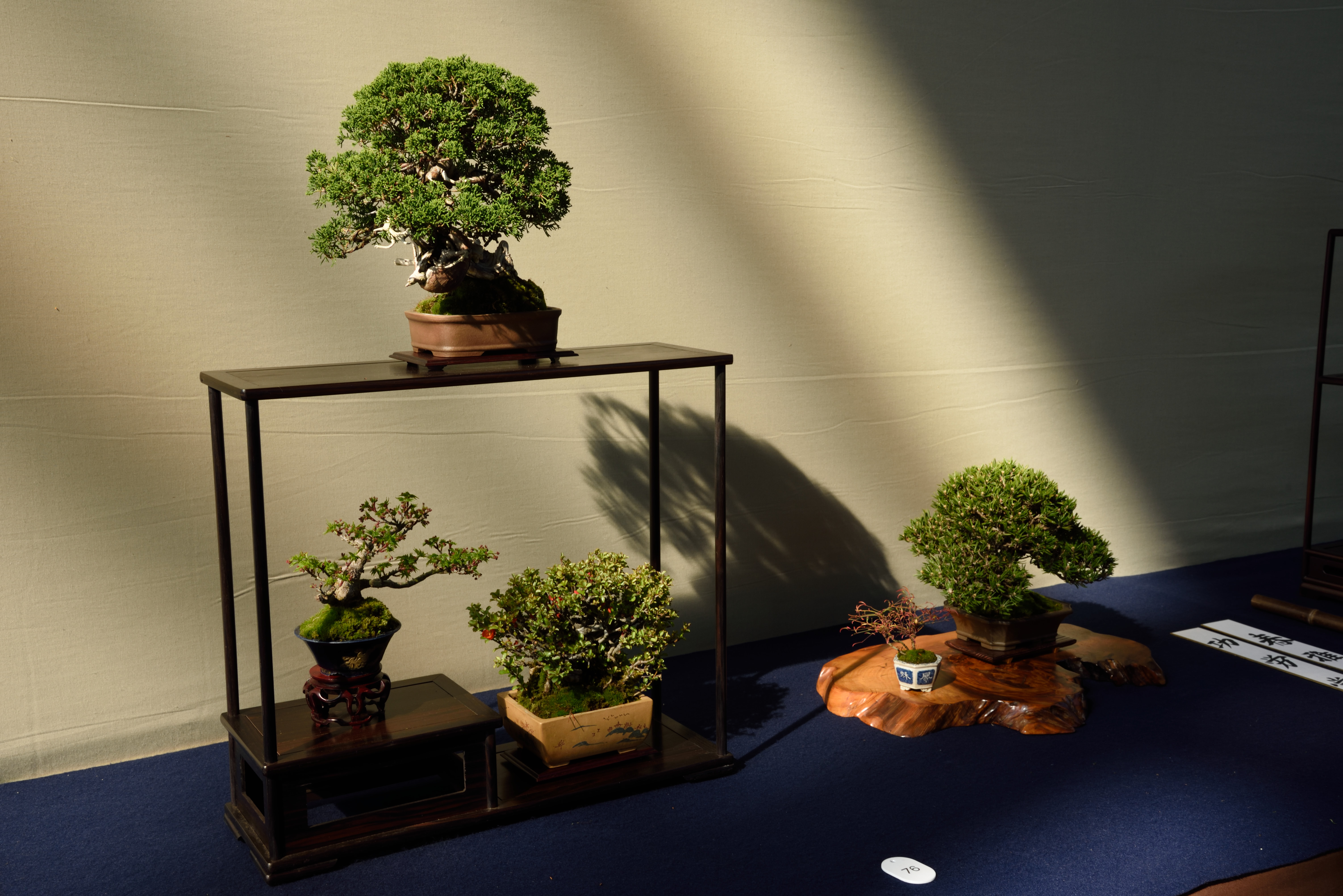 盆栽の展示です.梅と桜の開花時期の谷間なのか,展示品に花物は少なかったです.