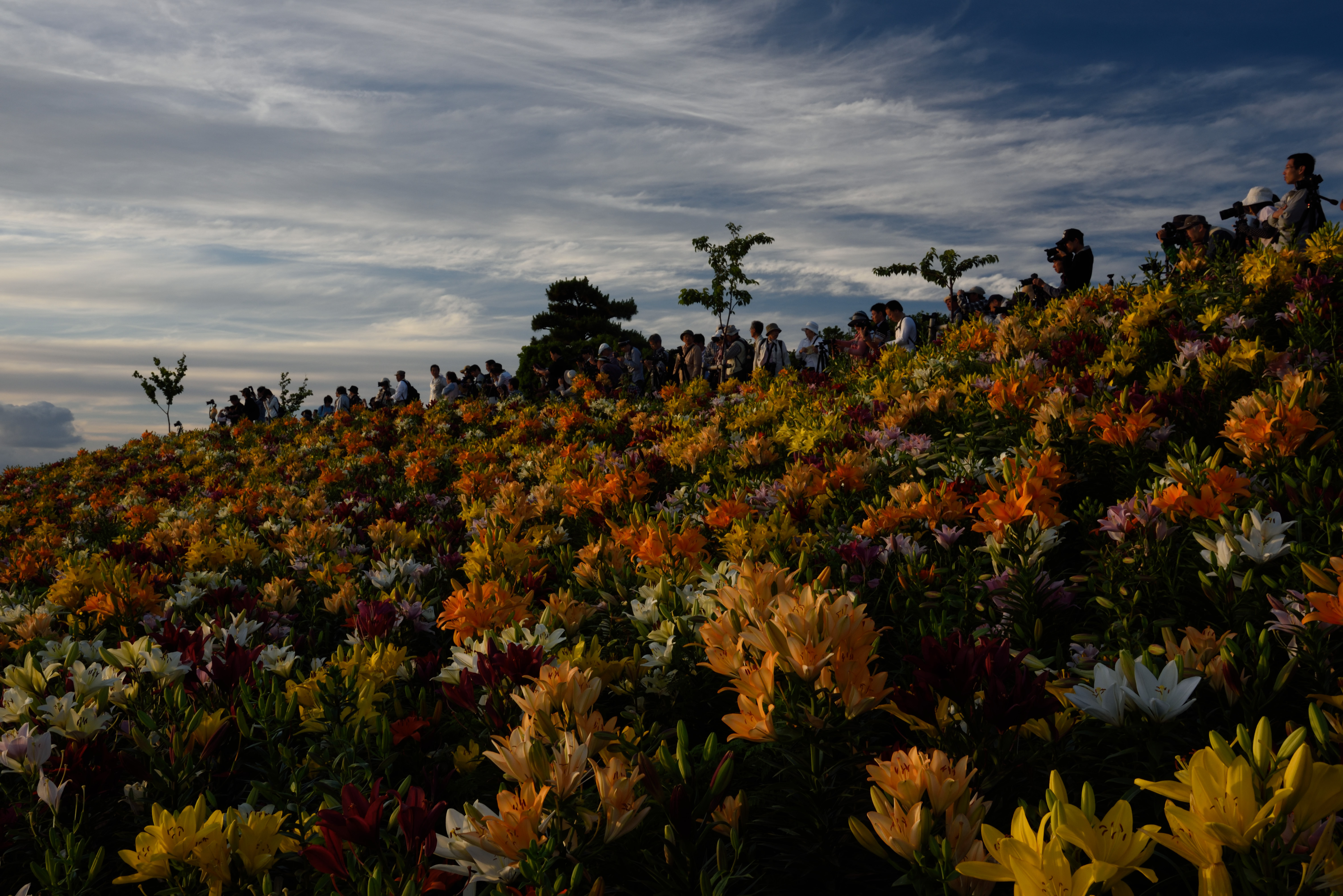 自分は人のいないところから撮ろうとしましたが,夕日とゆりの明るさが違いすぎてうまく撮れず,そこそこに引き上げました.