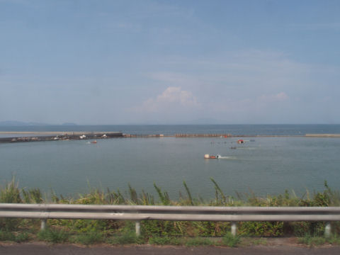 バスに乗ってちょっと寝て起きたとき,海が見えてきました.宇土半島の先端辺りのようです.