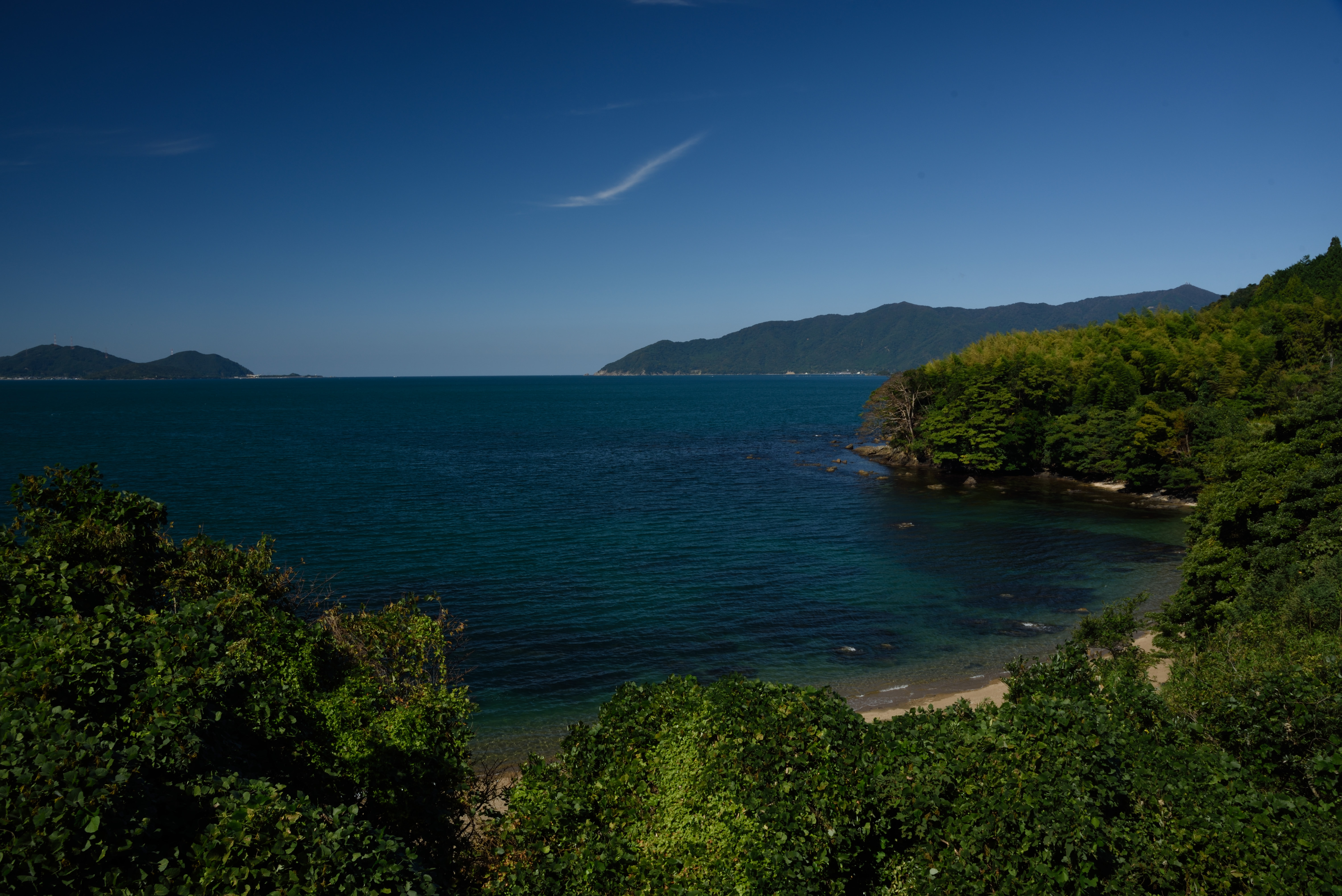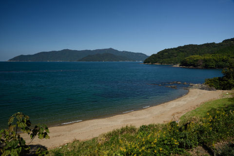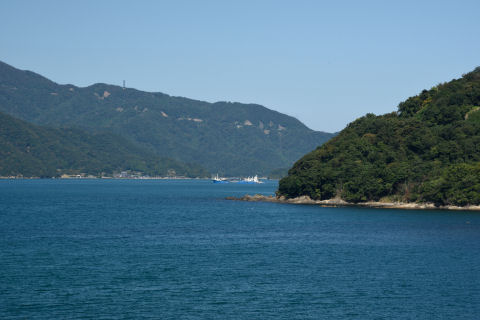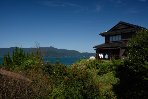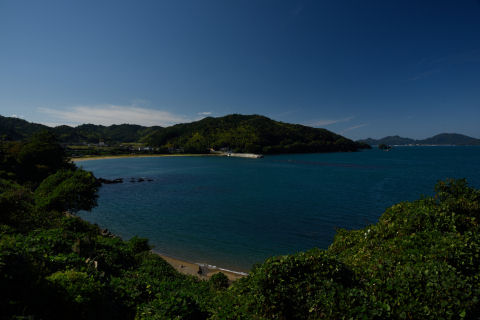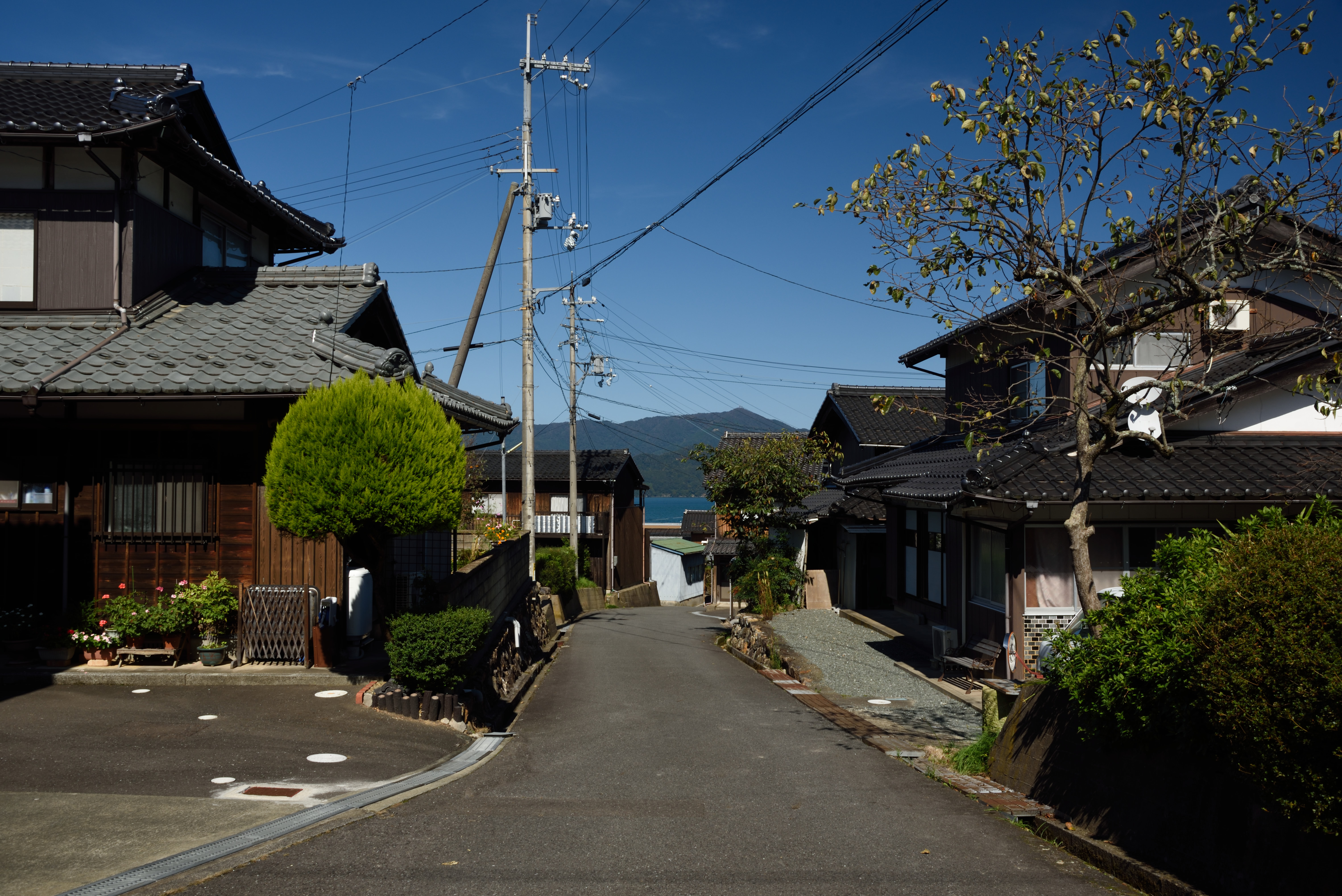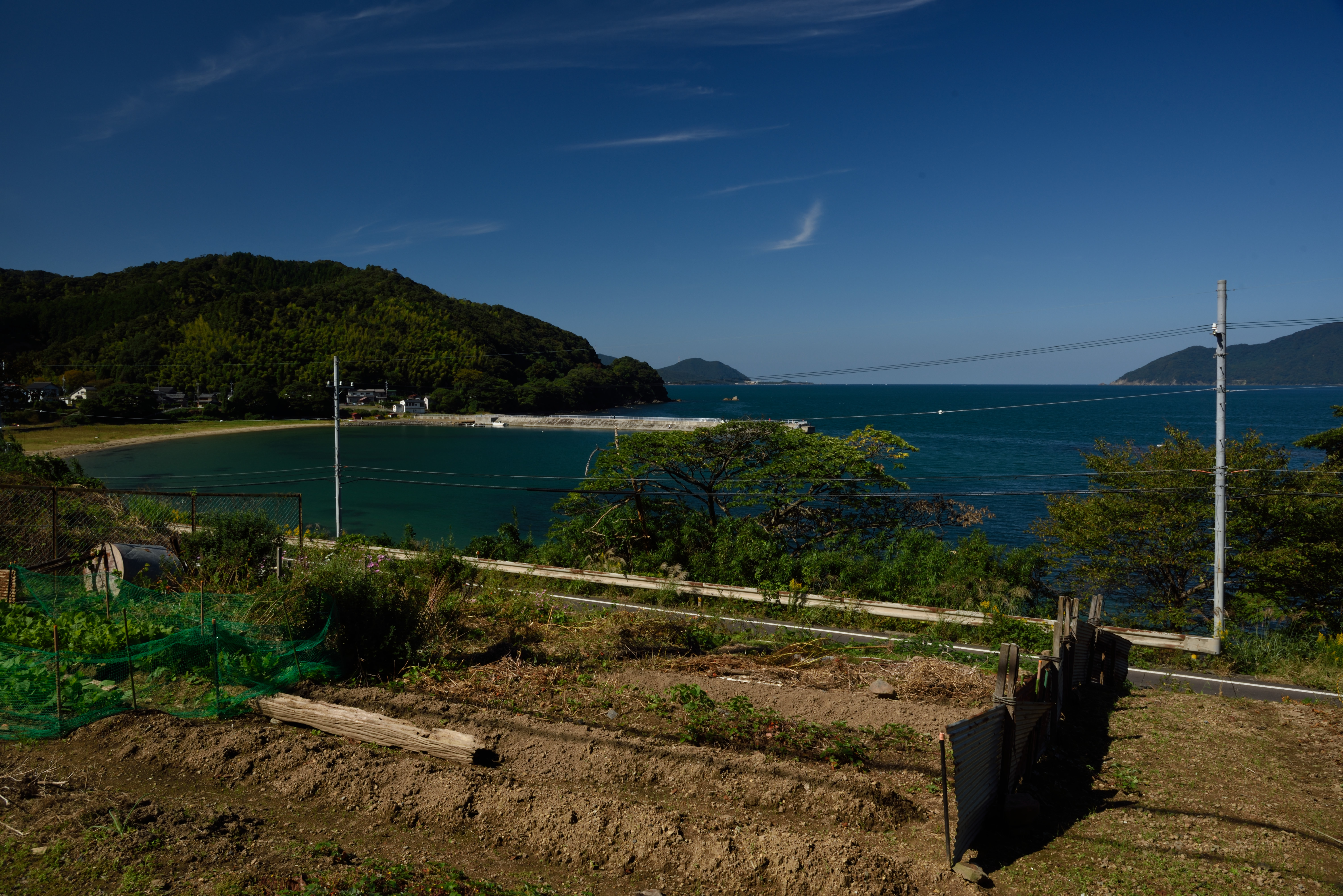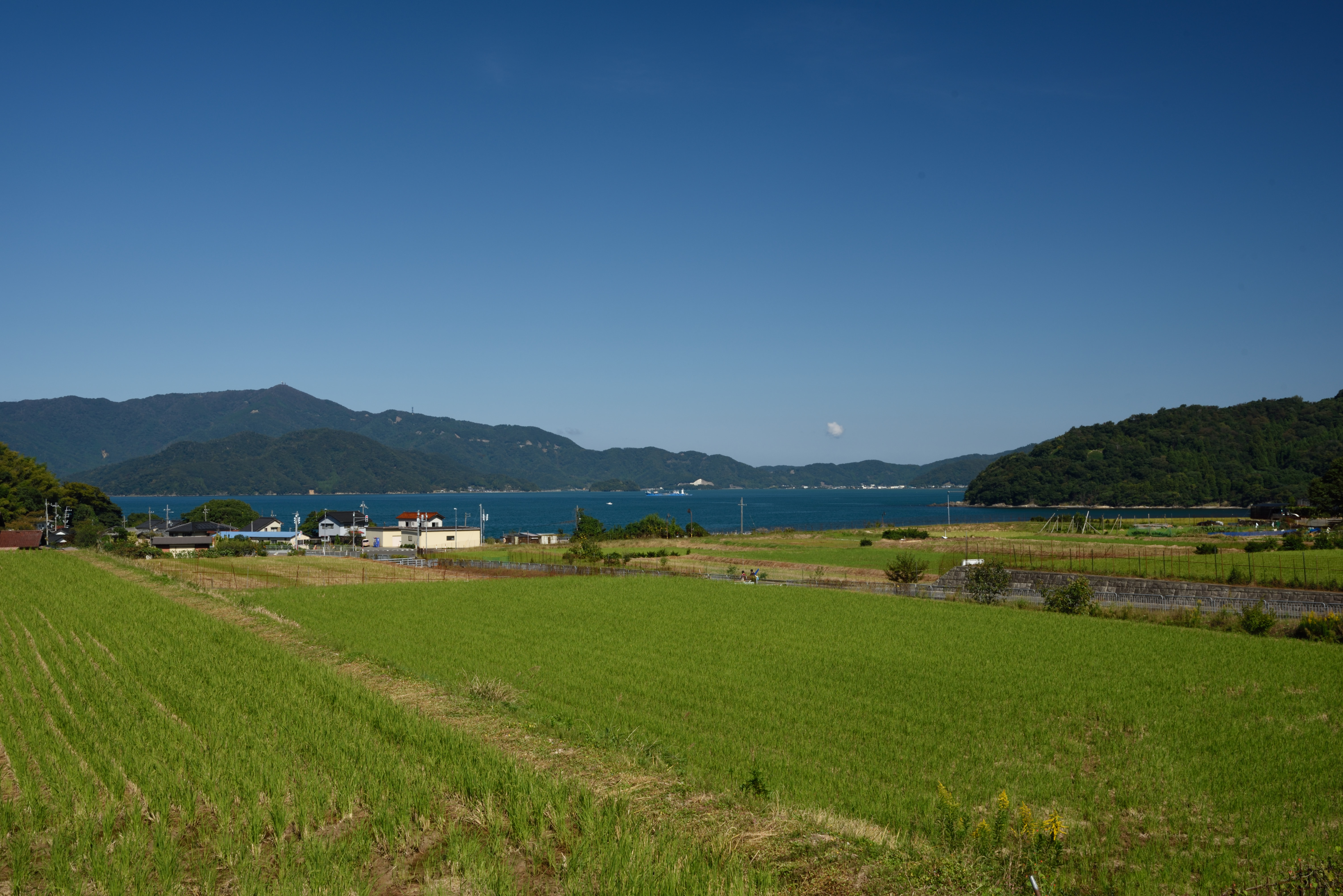 田畑や民家越しに海が見えます.