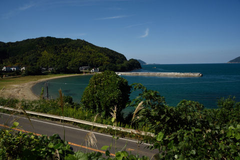 歩いてきた道が国道に合流したところに砂浜への道があったので,国道を渡って撮影.