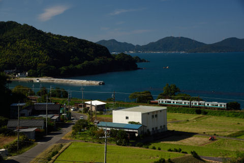 小浜線巡り~勢浜で撮り鉄(1) 2016/11/9(9年前) 写真, 北陸, 福井 (2016年10月15日) 今回の小浜線巡りのメインは勢浜での撮り鉄でした. 前回は国道27号に沿ってお食事処付近まで歩いたことまでを書きましたが,それから少し引換し,線路の下をくぐって小浜市営球場へ向かいました. 少し歩いて振り返った様子. 球場の手前の階段です. 球場から線路の方を臨むと,海と田んぼが見える良い光景. 時刻表を確認すると電車が通るのは約30分後.しばらく時間をつぶし,電車が隣の駅を出発する頃にカメラを構えて待っていると,電車が通っていきました.
