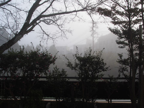 朝起きて窓を開けると,濃い霧でした.由布岳は見えません・・・