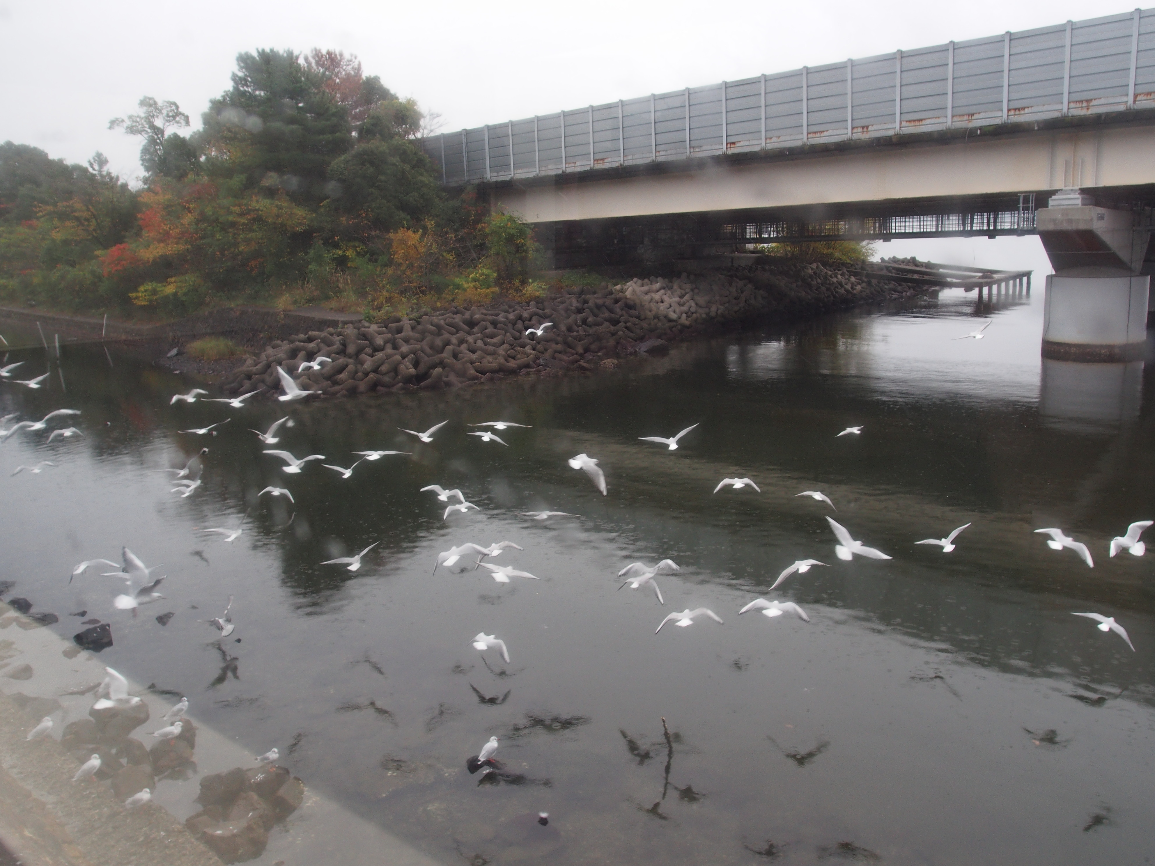 浜名湖佐久米駅では,ものすごい数のカモメが電車の近くに飛んできました.