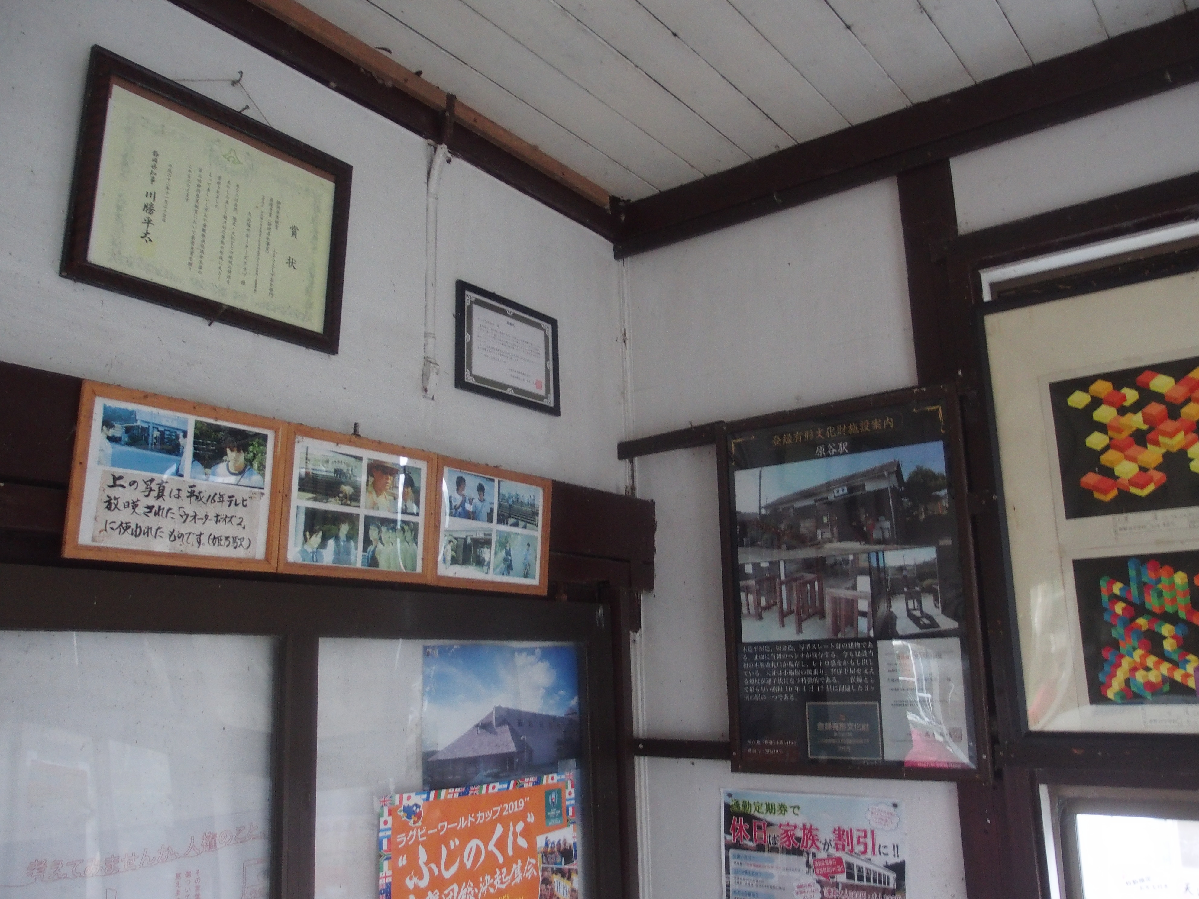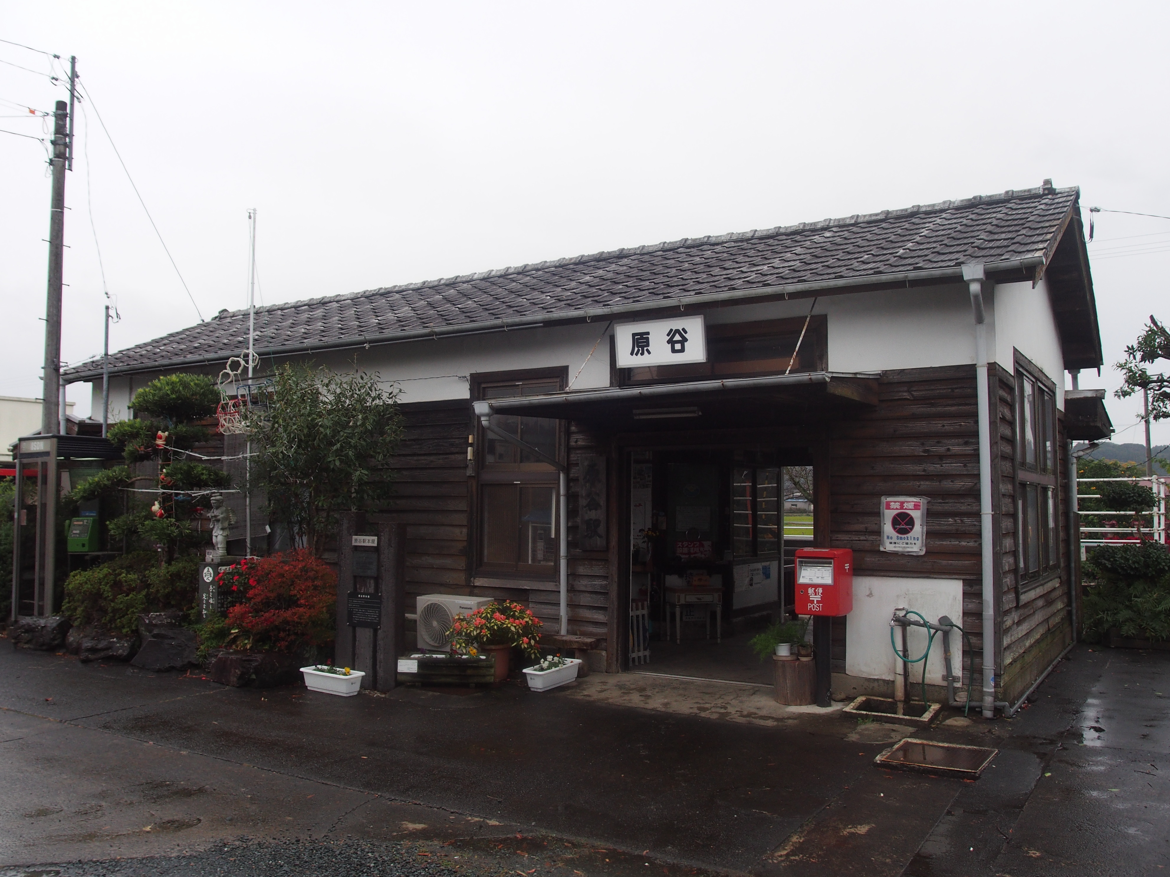 原谷駅で降りてみました(ちなみに天竜二俣駅や遠州森駅などでも数分から数十分程度の停車時間中に少しだけ降りています).昭和10年開業の駅舎の残る無人駅で,誰もいない中30分ほどゆっくり過ごしました.